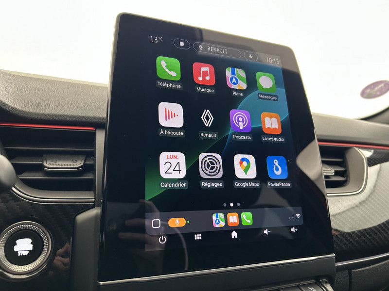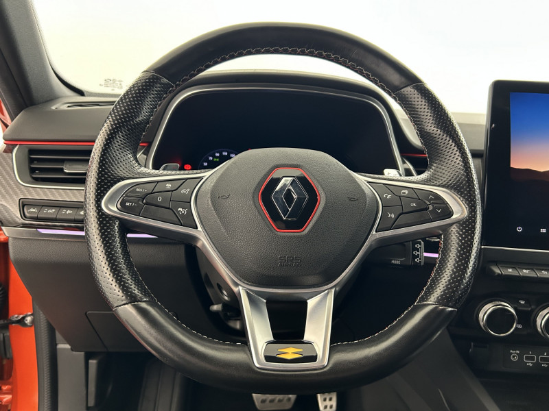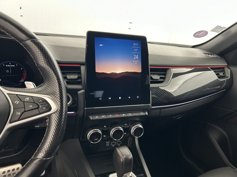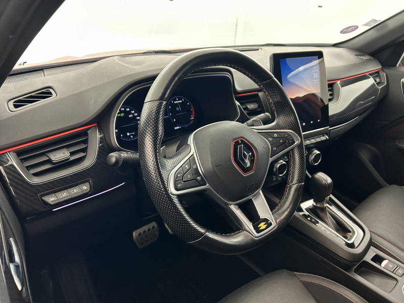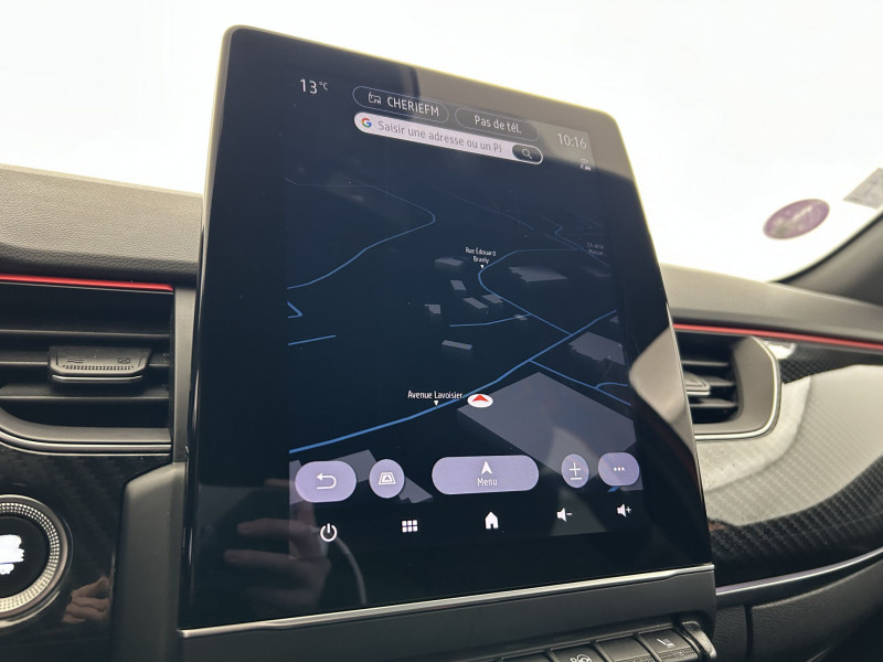 Aérateurs aux places AR / Alerte de distance de sécurité / Alerte de survitesse combinéà la vitesse limite de la navigation / Alerte d'oubli de ceinture de sécurité / Allumage automatique des phares et des essuis-glace avec capteur de pluie et de luminosité / Avertisseur de sortie de stationnement / Banquette AR avec accoudoir central / Boitier connect AIVC / Bouton d'appel d'urgence R-Call / Carte Renault avec accès et démarrage mains libres avec fermeture à l'éloignement / Commutation automatique des feux de route/croisement / Compartimentage de coffre / Compartimentage de coffre / Coques de rétroviseurs extérieures noires (avec Toit Noir) / Design exterieur RS-Line / Design intérieur RS-Line / Détection d'obstacle latérale / Easy link avec écran tactile 9.3", navigation, réplication smartphone, Bluetooth / Easy Park Assist / Eclairage d'ambiance / Feux de jour à LED avec signature lumineuse C-Shape / Freinage actif d'urgence avec détection piétons et cyclistes / Harmonie intérieure foncée / Indicateur de changement de vitesse / Jantes alliage 18" Silverstone diamantées exclusives R.S. Line avec insert Rouge / Kit de gonflage et de réparation des pneumatiques / Lève-vitres AR électriques avec fonction anti-pincement / Programme eco mode / Projecteurs AV full LED Pure Vision / Purificateur d'air / Renault Multi-sense / Rétroviseur intérieur électrochrome sans contour / Sellerie mixte cuir-suédine surpiqués rouge / Signature R.S. Line / Système ISOFIX (i-Size) aux places AR (latérales) / Tableau de bord avec écran numérique couleur 7'' / Volant chauffant / Volant cuir pleine fleur /