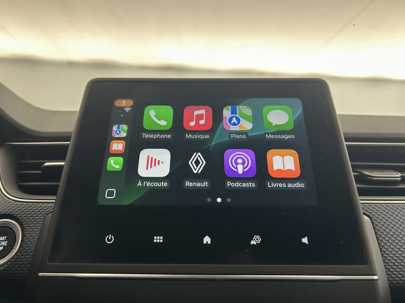 Aérateurs aux places AR / Alerte de distance de sécurité / Alerte de survitesse combinéà la vitesse limite de la navigation / Alerte d'oubli de ceinture de sécurité / Allumage automatique des phares et des essuis-glace avec capteur de pluie et de luminosité / Boitier connect AIVC / Bouton d'appel d'urgence R-Call / Carte Renault avec accès et démarrage mains libres avec fermeture à l'éloignement / Commutation automatique des feux de route/croisement / Compartimentage de coffre / Compartimentage de coffre / Compatibilité Apple CarPlay Wifi / Coques de rétroviseurs extérieures ton caisse / Feux de jour à LED avec signature lumineuse C-Shape / Freinage actif d'urgence avec détection piétons et cyclistes / Harmonie intérieure foncée / Indicateur de changement de vitesse / Jantes alliage 17" Bahamas diamantées noires / Kit de gonflage et de réparation des pneumatiques / Lève-vitres AR électriques avec fonction anti-pincement / Navigation embarquée avec cartographie Europe / Programme eco mode / Projecteurs AV full LED Pure Vision / Purificateur d'air / Sellerie tissu Noir Titane / Système ISOFIX (i-Size) aux places AR (latérales) / Tableau de bord avec écran couleur 4,2'' et compteurs analogiques / Volant gainé en textile enduit grainé Soft Touch /