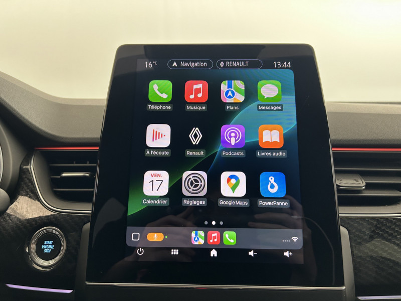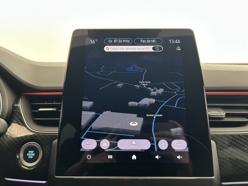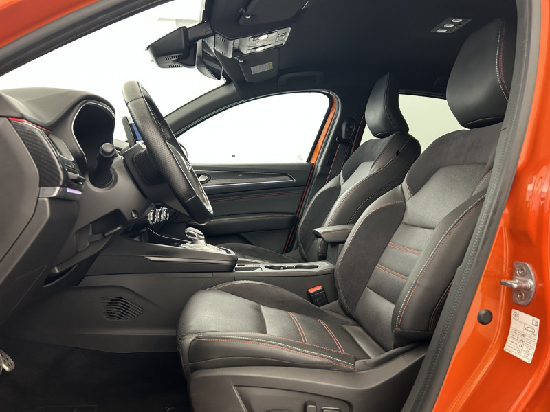 Aérateurs aux places AR / Alerte de distance de sécurité / Alerte de survitesse combinéà la vitesse limite de la navigation / Alerte d'oubli de ceinture de sécurité / Allumage automatique des phares et des essuis-glace avec capteur de pluie et de luminosité / Avertisseur de sortie de stationnement / Banquette AR avec accoudoir central / Boite de vitesse E shifter / Boitier connect AIVC / Bouton d'appel d'urgence R-Call / Carte Renault avec accès et démarrage mains libres avec fermeture à l'éloignement / Commutation automatique des feux de route/croisement / Compartimentage de coffre / Compartimentage de coffre / Coques de rétroviseurs extérieures noires (avec Toit Noir) / Design exterieur RS-Line / Design intérieur RS-Line / Détection d'obstacle latérale / Easy link avec écran tactile 9.3", navigation, réplication smartphone, Bluetooth / Easy Park Assist / Eclairage d'ambiance / Feux de jour à LED avec signature lumineuse C-Shape / Freinage actif d'urgence avec détection piétons et cyclistes / Harmonie intérieure foncée / Indicateur de changement de vitesse / Jantes alliage 18" Silverstone diamantées exclusives R.S. Line avec insert Rouge / Kit de gonflage et de réparation des pneumatiques / Lève-vitres AR électriques avec fonction anti-pincement / Programme eco mode / Projecteurs AV full LED Pure Vision / Purificateur d'air / Renault Multi-sense / Rétroviseur intérieur électrochrome sans contour / Sellerie mixte cuir-suédine surpiqués rouge / Signature R.S. Line / Système ISOFIX (i-Size) aux places AR (latérales) / Tableau de bord avec écran numérique couleur 7'' / Volant chauffant / Volant cuir pleine fleur /