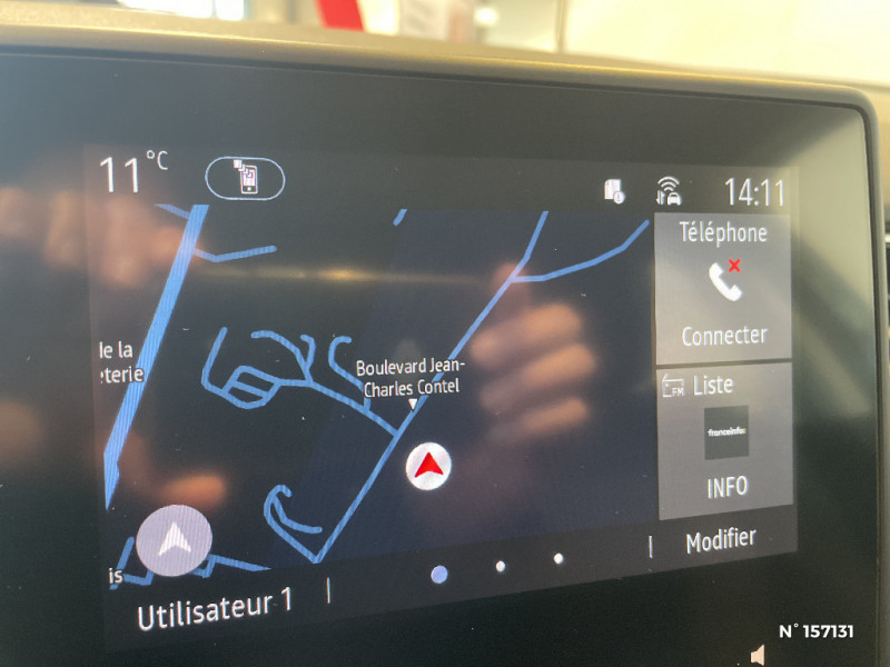 Coques de rétroviseurs ton caisse / Indicateur de changement de vitesse / Alerte Distance Sécurité / Boitier connect AIVC / Alerte d'oubli de ceinture de sécurité / Compartimentage de coffre / Projecteurs AV full LED Pure Vision / Commutation automatique des feux de route/croisement / Kit de gonflage et de réparation des pneumatiques / Harmonie foncé / Carte Renault avec accès et démarrage mains libres avec fermeture à l'éloignement / Allumage automatique des phares et des essuis-glace avec capteur de pluie et de luminosité / Feux de jour à LED avec signature lumineuse C-Shape / Programme eco mode / Aérateurs aux places AR / Lève-vitres AR électriques avec fonction anti-pincement / Purificateur d'air / Freinage actif d'urgence avec détection piétons et cyclistes / Bouton d'appel d'urgence R-Call / Sellerie tissu Noir Titane / Volant gainé en similicuir Soft Touch / Navigation embarquée avec cartographie Europe / Tableau de bord avec écran couleur 4,2'' et compteurs analogiques / Système ISOFIX (i-Size) aux places AR (latérales) / Alerte de survitesse combinéà la vitesse limite de la navigation / Compatibilité Apple CarPlay Wifi / Projecteurs AV LED pure vision / Jantes alliage 17" Bahamas diamantées noires