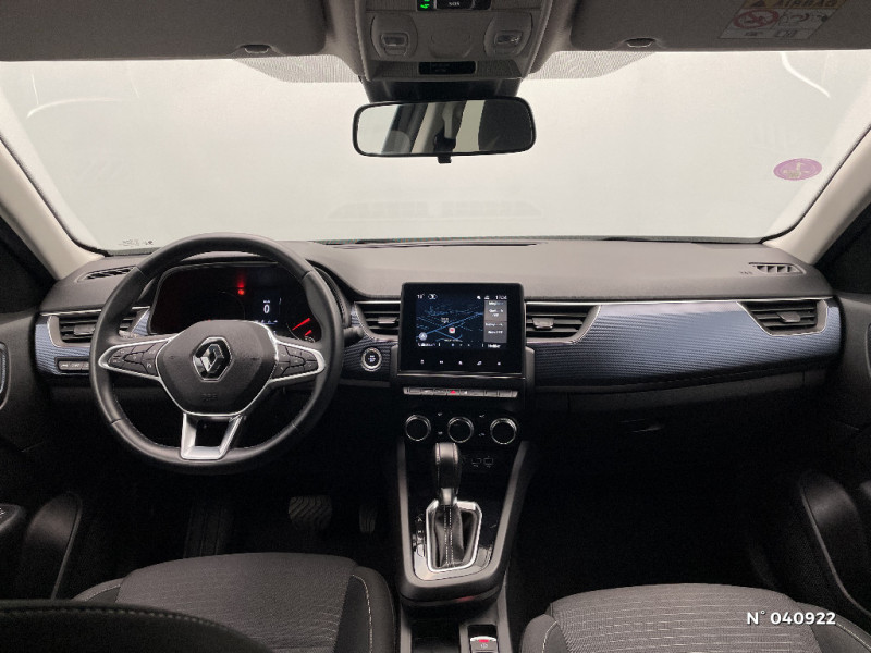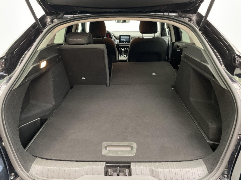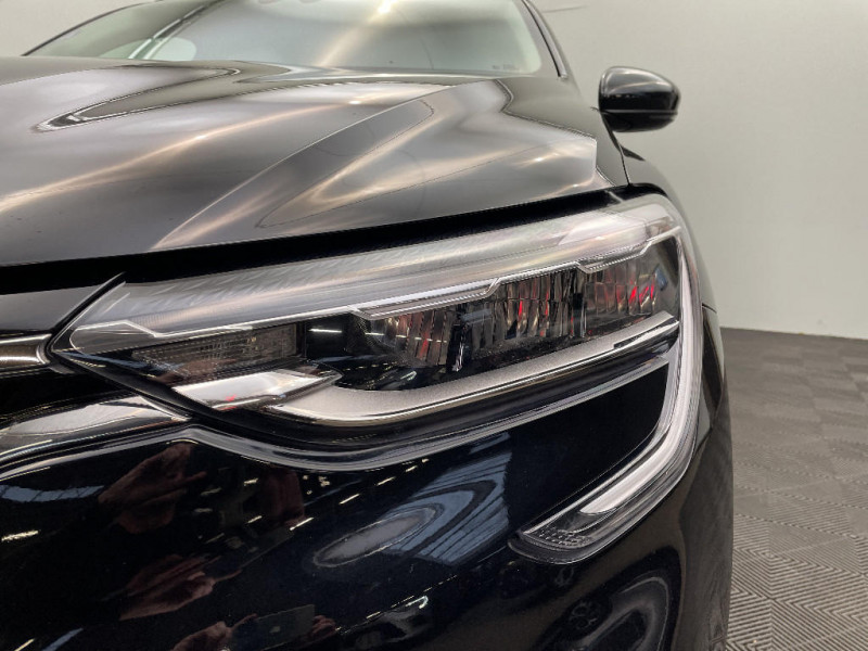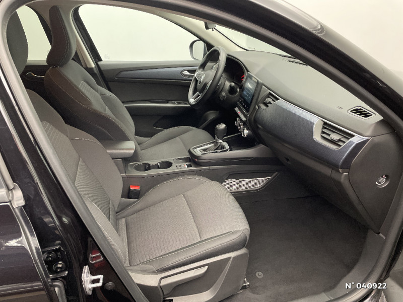 Système ISOFIX (i-Size) aux places AR (latérales) / Commutation automatique des feux de route/croisement / Kit de gonflage et de réparation des pneumatiques / Harmonie foncé / Carte Renault avec accès et démarrage mains libres avec fermeture à l'éloignement / Allumage automatique des phares et des essuis-glace avec capteur de pluie et de luminosité / Feux de jour à LED avec signature lumineuse C-Shape / Programme eco mode / Aérateurs aux places AR / Coques de rétroviseurs ton caisse / Indicateur de changement de vitesse / Alerte Distance Sécurité / Alerte d'oubli de ceinture de sécurité / Compartimentage de coffre / Lève-vitres AR électriques avec fonction anti-pincement / Purificateur d'air / Freinage actif d'urgence avec détection piétons et cyclistes / Bouton d'appel d'urgence R-Call / Sellerie tissu Noir Titane / Volant gainé en similicuir Soft Touch / Boitier connect AIVC / Alerte de survitesse combinéà la vitesse limite de la navigation / Compatibilité Apple CarPlay Wifi / Jantes alliage 17" Bahamas diamantées noires / Navigation embarquée avec cartographie Europe / Tableau de bord avec écran couleur 4,2'' et compteurs analogiques / Projecteurs AV full LED Pure Vision