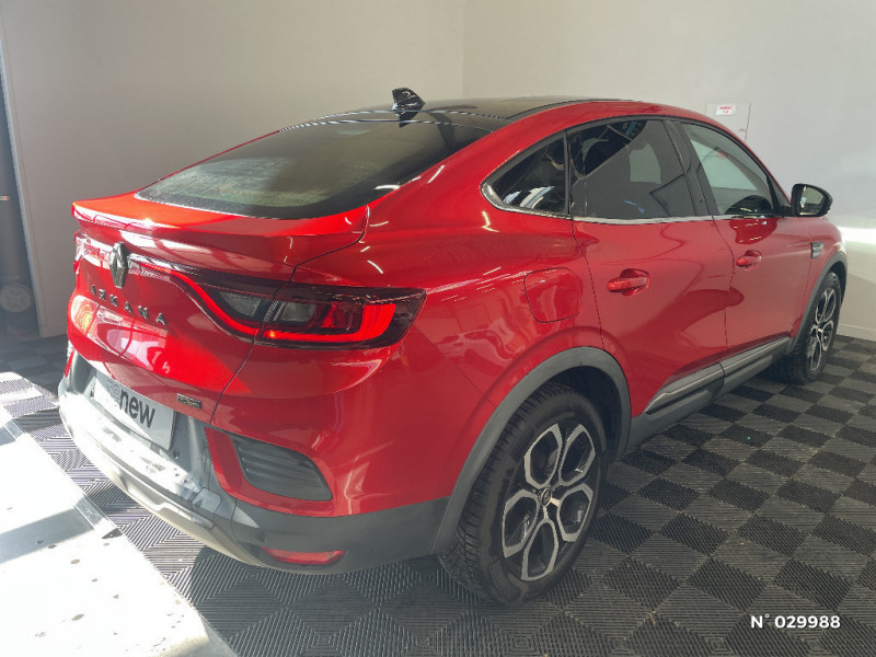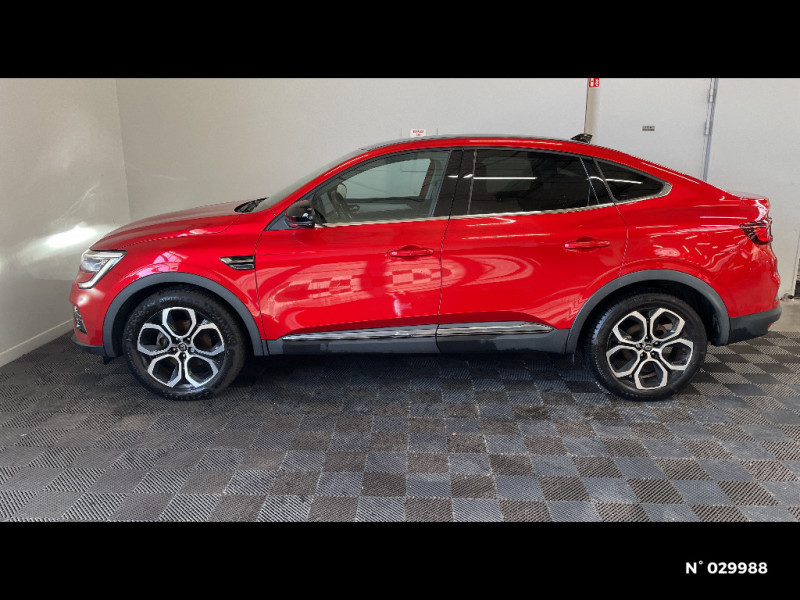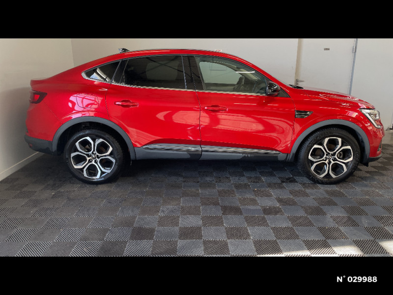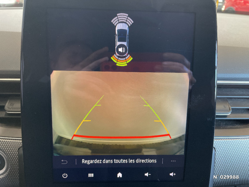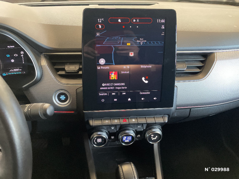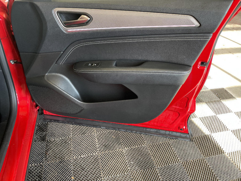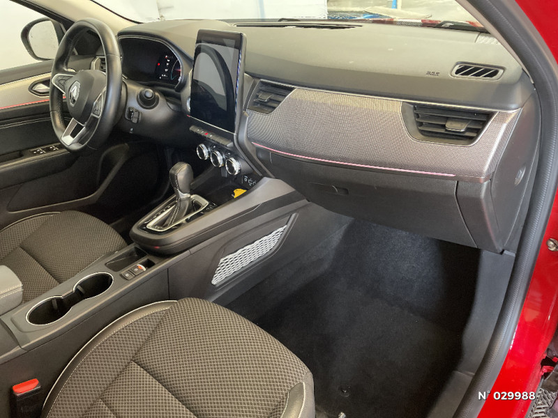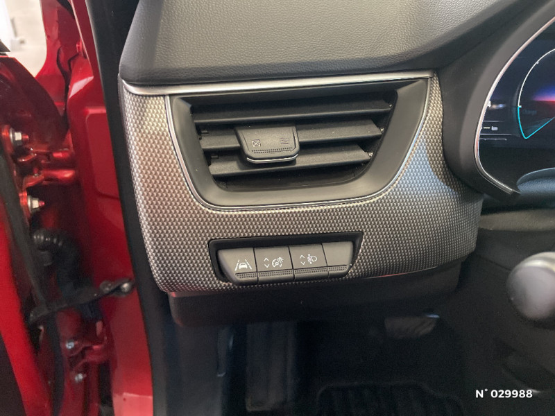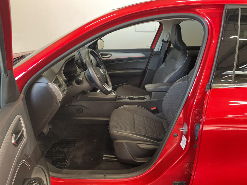 Harmonie foncé / Carte Renault avec accès et démarrage mains libres avec fermeture à l'éloignement / Renault Multi-sense / Allumage automatique des phares et des essuis-glace avec capteur de pluie et de luminosité / Avertisseur de sortie de stationnement / Boitier connect AIVC / Tableau de bord avec écran numérique et personnalisable 10" / Sellerie similicuir-tissu Noir Titane / Easy link avec écran tactile 9.3", navigation, réplication smartphone, Bluetooth / Réhomologation E-Tech / Volant non chauffant / Système ISOFIX (i-Size) aux places AR (latérales) / Alerte de survitesse combinéà la vitesse limite de la navigation / Compatibilité Apple CarPlay Wifi / Frein de parking électrique avec fonction Auto-Hold / Jantes alliage 18" Pasadena diamantées noires / Feux de jour à LED avec signature lumineuse C-Shape / Programme eco mode / Aérateurs aux places AR / Lève-vitres AR électriques avec fonction anti-pincement / Purificateur d'air / Freinage actif d'urgence avec détection piétons et cyclistes / Bouton d'appel d'urgence R-Call / Volant gainé en similicuir Soft Touch / Rétroviseur intérieur électrochrome / Coques de rétroviseurs ton caisse / Peinture opaque / Indicateur de changement de vitesse / Eclairage d'ambiance / Alerte Distance Sécurité / Alerte d'oubli de ceinture de sécurité / Banquette AR avec accoudoir central / Compartimentage de coffre / Projecteurs AV full LED Pure Vision / Commutation automatique des feux de route/croisement / Kit de gonflage et de réparation des pneumatiques