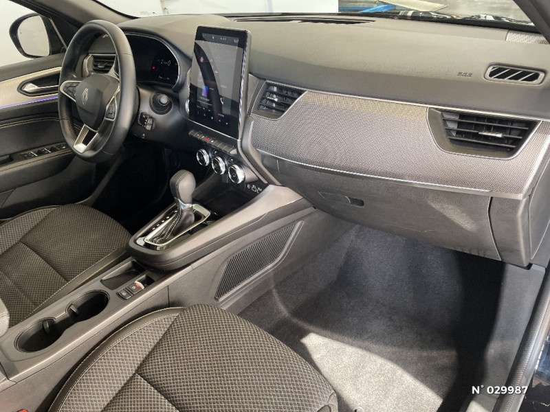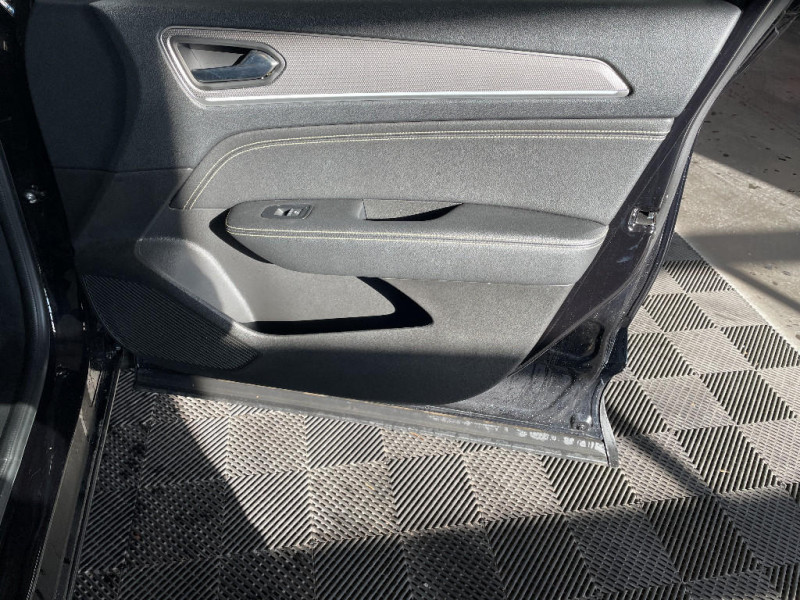 Alerte détection de fatigue / Prédisposition éthylotest / Lame métallique sur bouclier AV inspirée de l?univers de la Formule 1 / Détection intelligente des limitations de vitesse et prévention survitesse / My Safety switch (raccourci vers configuration personnalisée des aides à la conduite) / Sans centrage dans la voie / Boîte de vitesse automatique 4 rapports / Projecteurs AV LED pure vision / Coques de rétroviseurs extérieures noires / Ciel de toit noir / Jantes alliage 17?? Bahamas gris pyrite / Jantes alliage 18?? Silverstone diamantées / Sellerie textile enduit grainé - tissu noir / Plancher de coffre amovible / Système multimédia easy link connecté avec écran tactile 9,3, radio DAB, navigation embarquée / Système ISOFIX (i-Size) aux places AR (latérales) / Frein de parking électrique avec fonction Auto-Hold / Tableau de bord avec écran numérique et personnalisable 10" / Avertisseur de sortie de stationnement / Feux de jour à LED avec signature lumineuse C-Shape / Programme eco mode / Aérateurs aux places AR / Lève-vitres AR électriques avec fonction anti-pincement / Purificateur d'air / Freinage actif d'urgence avec détection piétons et cyclistes / Bouton d'appel d'urgence R-Call / Boitier connect AIVC / Rétroviseur intérieur électrochrome / Carte Renault avec accès et démarrage mains libres avec fermeture à l'éloignement / Sans rangement de coffre / Volant non chauffant / Banquette AR avec accoudoir central / Projecteurs AV full LED Pure Vision / Kit de gonflage et de réparation des pneumatiques / Harmonie foncé / Commutation automatique des feux de route/croisement / Renault Multi-sense / Allumage automatique des phares et des essuis-glace avec capteur de pluie et de luminosité / Indicateur de changement de vitesse / Eclairage d'ambiance / Alerte Distance Sécurité