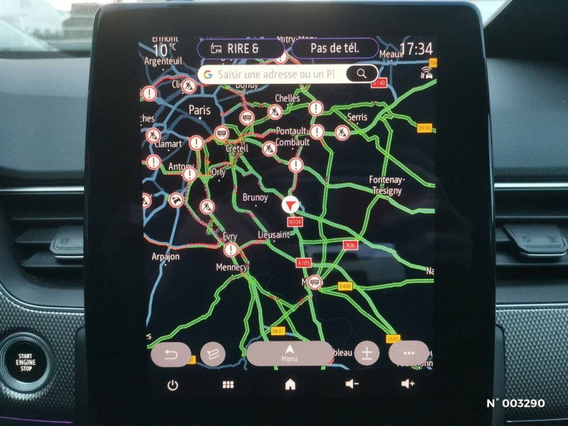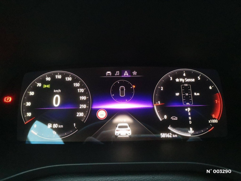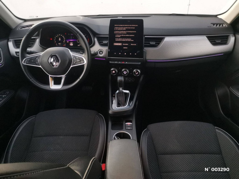 Alerte de survitesse combinéà la vitesse limite de la navigation / Alerte d'oubli de ceinture de sécurité / Allumage automatique des phares et des essuis-glace avec capteur de pluie et de luminosité / Alerte de distance de sécurité / Aérateurs aux places AR / Boitier connect AIVC / Avertisseur de sortie de stationnement / Easy link avec écran tactile 9.3", navigation, réplication smartphone, Bluetooth / Commutation automatique des feux de route/croisement / Compartimentage de coffre / Carte Renault avec accès et démarrage mains libres avec fermeture à l'éloignement / Banquette AR avec accoudoir central / Bouton d'appel d'urgence R-Call / Feux de jour à LED avec signature lumineuse C-Shape / Kit de gonflage et de réparation des pneumatiques / Coques de rétroviseurs extérieures ton caisse / Eclairage d'ambiance / Compartimentage de coffre / Programme eco mode / Harmonie intérieure foncée / Jantes alliage 18" Pasadena diamantées noires / Indicateur de changement de vitesse / Freinage actif d'urgence avec détection piétons et cyclistes / Renault Multi-sense / Purificateur d'air / Projecteurs AV full LED Pure Vision / Sellerie textile enduit grainé-tissu Noir Titane / Lève-vitres AR électriques avec fonction anti-pincement / Système ISOFIX (i-Size) aux places AR (latérales) / Tableau de bord avec écran numérique couleur 7'' / Rétroviseur intérieur électrochrome / Volant cuir pleine fleur