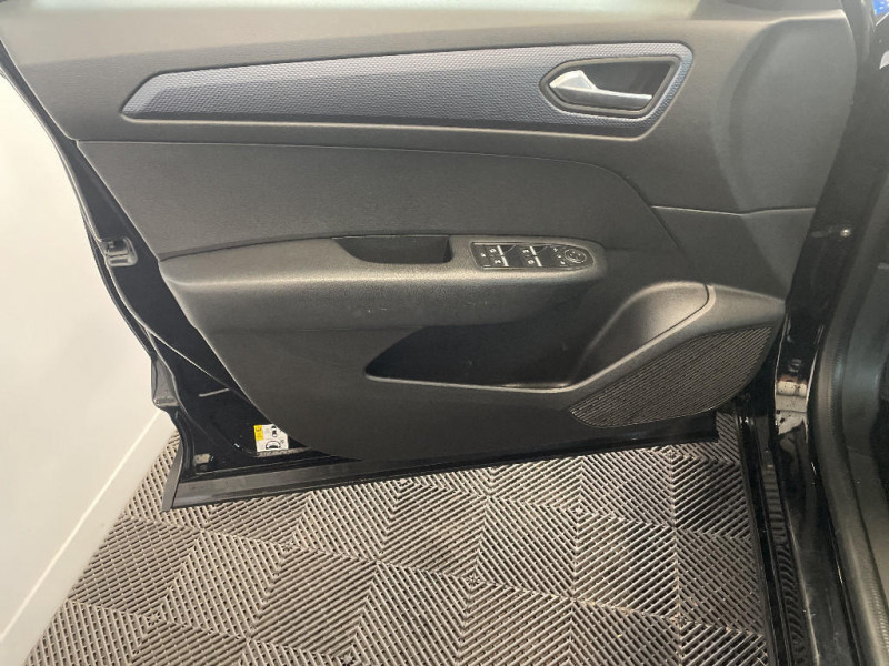 Aérateurs aux places AR / Indicateur de changement de vitesse / Alerte Distance Sécurité / Alerte d'oubli de ceinture de sécurité / Compartimentage de coffre / Appellation Renault / Kit de gonflage et de réparation des pneumatiques / Harmonie foncé / Système ISOFIX (i-Size) aux places latérales AR et passager AV / Carte Renault avec accès et démarrage mains libres avec fermeture à l'éloignement / Pneu standard / Alerte de survitesse combinéà la vitesse limite de la navigation / Allumage automatique des phares et des essuis-glace avec capteur de pluie et de luminosité / Feux de jour à LED avec signature lumineuse C-Shape / Monte banalisée / Programme eco mode / Projecteurs AV full LED Pure Vision / Commutation automatique des feux de route/croisement / Coques de rétroviseurs ton caisse / Navigation embarquée avec cartographie Europe / Lève-vitres AR électriques avec fonction anti-pincement / Purificateur d'air / Jantes alliage 17" Bahamas diamantées noires / Freinage actif d'urgence avec détection piétons et cyclistes / Bouton d'appel d'urgence R-Call / Sellerie tissu Noir Titane / Volant gainé en similicuir Soft Touch / Boitier connect AIVC / Cartographie France / Cartographie Standard / Système Multimédia EASY LINK avec écran 7" avec replication smartphone + WIFI - 6 haut-parleurs / Tableau de bord avec écran numérique couleur 7''