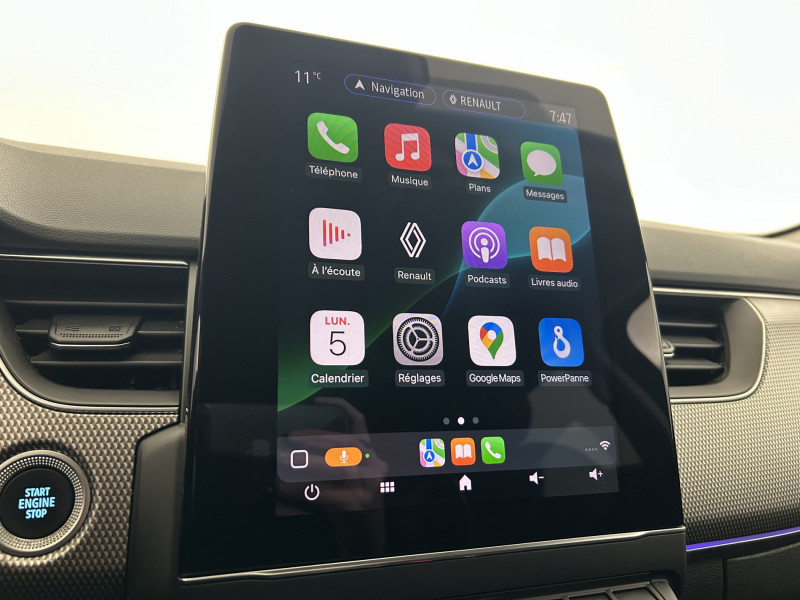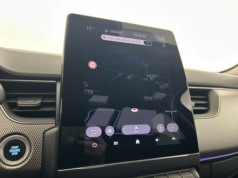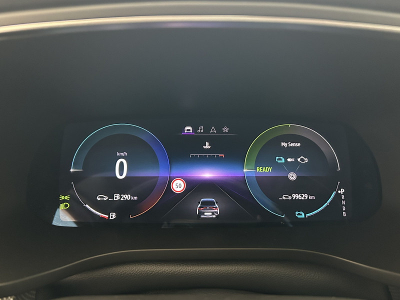 Aérateurs aux places AR / Alerte de distance de sécurité / Alerte de survitesse combinéà la vitesse limite de la navigation / Alerte d'oubli de ceinture de sécurité / Allumage automatique des phares et des essuis-glace avec capteur de pluie et de luminosité / Avertisseur de sortie de stationnement / Banquette AR avec accoudoir central / Boitier connect AIVC / Bouton d'appel d'urgence R-Call / Carte Renault avec accès et démarrage mains libres avec fermeture à l'éloignement / Commutation automatique des feux de route/croisement / Compartimentage de coffre / Compartimentage de coffre / Coques de rétroviseurs extérieures ton caisse / Easy link avec écran tactile 9.3", navigation, réplication smartphone, Bluetooth / Eclairage d'ambiance / Feux de jour à LED avec signature lumineuse C-Shape / Freinage actif d'urgence avec détection piétons et cyclistes / Harmonie intérieure foncée / Indicateur de changement de vitesse / Jantes alliage 18" Pasadena diamantées noires / Kit de gonflage et de réparation des pneumatiques / Lève-vitres AR électriques avec fonction anti-pincement / Programme eco mode / Projecteurs AV full LED Pure Vision / Purificateur d'air / Renault Multi-sense / Rétroviseur intérieur électrochrome / Sellerie textile enduit grainé-tissu Noir Titane / Système ISOFIX (i-Size) aux places AR (latérales) / Tableau de bord avec écran numérique couleur 7'' / Volant cuir pleine fleur /