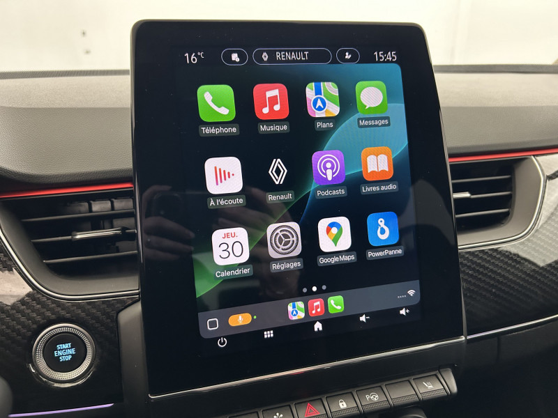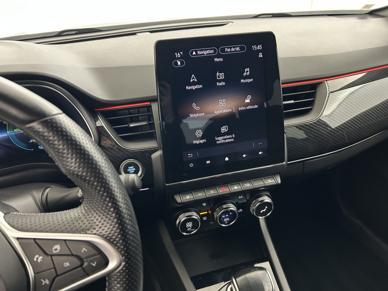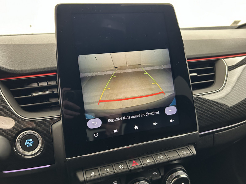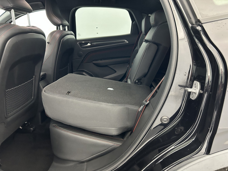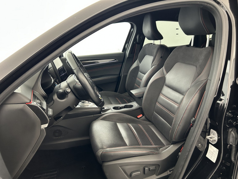 Aérateurs aux places AR / Alerte de distance de sécurité / Alerte de survitesse combinéà la vitesse limite de la navigation / Alerte d'oubli de ceinture de sécurité / Allumage automatique des phares et des essuis-glace avec capteur de pluie et de luminosité / Avertisseur de sortie de stationnement / Banquette AR avec accoudoir central / Boite de vitesse E shifter / Boitier connect AIVC / Bouton d'appel d'urgence R-Call / Carte Renault avec accès et démarrage mains libres avec fermeture à l'éloignement / Commutation automatique des feux de route/croisement / Compartimentage de coffre / Coques de rétroviseurs extérieures noires / Design exterieur RS-Line / Design intérieur RS-Line / Détection d'obstacle latérale / Easy link avec écran tactile 9.3", navigation, réplication smartphone, Bluetooth / Easy Park Assist / Eclairage d'ambiance / Feux de jour à LED avec signature lumineuse C-Shape / Freinage actif d'urgence avec détection piétons et cyclistes / Frein de parking électrique avec fonction Auto-Hold / Harmonie intérieure foncée / Indicateur de changement de vitesse / Jantes alliage 18" Silverstone diamantées exclusives R.S. Line avec insert Rouge / Lève-vitres AR électriques avec fonction anti-pincement / Programme eco mode / Projecteurs AV full LED Pure Vision / Purificateur d'air / Réhomologation E-Tech / Renault Multi-sense / Rétroviseur intérieur électrochrome sans contour / Sellerie mixte cuir-suédine surpiqués rouge / Signature R.S. Line / Système ISOFIX (i-Size) aux places AR (latérales) / Tableau de bord avec écran numérique et personnalisable 10" / Version Fast Track / Volant chauffant / Volant cuir pleine fleur /