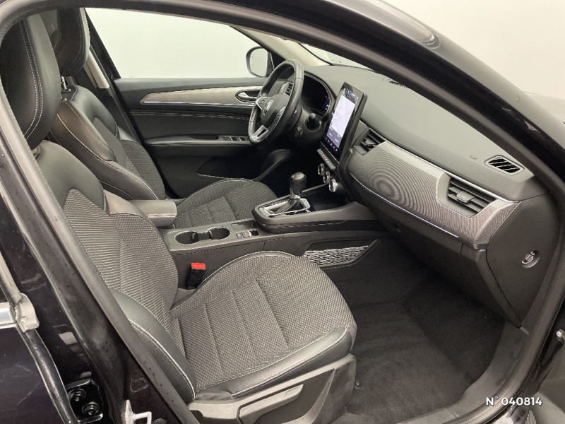 Jantes alliage 18" Pasadena diamantées noires / Freinage actif d'urgence avec détection piétons et cyclistes / Bouton d'appel d'urgence R-Call / Volant cuir pleine fleur / Boitier connect AIVC / Tableau de bord avec écran numérique couleur 7'' / Sellerie similicuir-tissu Noir Titane / Easy link avec écran tactile 9.3", navigation, réplication smartphone, Bluetooth / Système ISOFIX (i-Size) aux places AR (latérales) / Système ISOFIX (i-Size) aux places latérales AR et passager AV / Carte Renault avec accès et démarrage mains libres avec fermeture à l'éloignement / Renault Multi-sense / Alerte de survitesse combinéà la vitesse limite de la navigation / Allumage automatique des phares et des essuis-glace avec capteur de pluie et de luminosité / Avertisseur de sortie de stationnement / Feux de jour à LED avec signature lumineuse C-Shape / Projecteurs AV full LED Pure Vision / Commutation automatique des feux de route/croisement / Kit de gonflage et de réparation des pneumatiques / Harmonie foncé / Programme eco mode / Aérateurs aux places AR / Lève-vitres AR électriques avec fonction anti-pincement / Purificateur d'air / Rétroviseur intérieur électrochrome / Coques de rétroviseurs ton caisse / Indicateur de changement de vitesse / Eclairage d'ambiance / Alerte Distance Sécurité / Alerte d'oubli de ceinture de sécurité / Banquette AR avec accoudoir central / Compartimentage de coffre