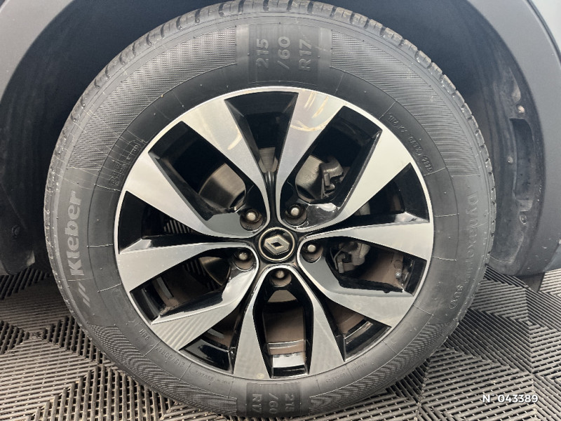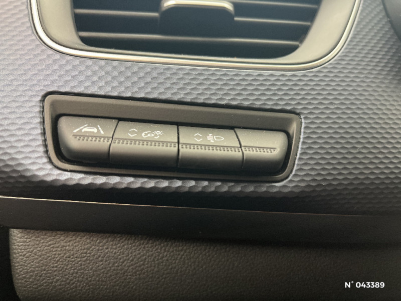 Navigation embarquée avec cartographie Europe / Système ISOFIX (i-Size) aux places AR (latérales) / Alerte de survitesse combinéà la vitesse limite de la navigation / Compatibilité Apple CarPlay Wifi / Jantes alliage 17" Bahamas diamantées noires / Indicateur de changement de vitesse / Alerte Distance Sécurité / Alerte d'oubli de ceinture de sécurité / Compartimentage de coffre / Projecteurs AV full LED Pure Vision / Commutation automatique des feux de route/croisement / Kit de gonflage et de réparation des pneumatiques / Harmonie foncé / Carte Renault avec accès et démarrage mains libres avec fermeture à l'éloignement / Allumage automatique des phares et des essuis-glace avec capteur de pluie et de luminosité / Feux de jour à LED avec signature lumineuse C-Shape / Programme eco mode / Aérateurs aux places AR / Lève-vitres AR électriques avec fonction anti-pincement / Purificateur d'air / Coques de rétroviseurs ton caisse / Freinage actif d'urgence avec détection piétons et cyclistes / Bouton d'appel d'urgence R-Call / Sellerie tissu Noir Titane / Volant gainé en similicuir Soft Touch / Boitier connect AIVC / Tableau de bord avec écran couleur 4,2'' et compteurs analogiques