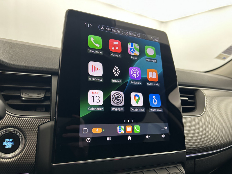 Aérateurs aux places AR / Alerte collision AR et freinage actif d'urgence AR piéton / Alerte de distance de sécurité / Alerte d'oubli de ceinture de sécurité / Allumage automatique des phares et des essuis-glace avec capteur de pluie et de luminosité / Avertisseur de sortie de stationnement / Banquette AR avec accoudoir central / Boitier connect AIVC / Bouton d'appel d'urgence R-Call / Carte Renault avec accès et démarrage mains libres avec fermeture à l'éloignement / Commutation automatique des feux de route/croisement / Compartimentage de coffre / Compartimentage de coffre / Coques de rétroviseurs extérieures ton caisse / Easy link avec écran tactile 9.3", navigation, réplication smartphone, Bluetooth / Eclairage d'ambiance / Feux de jour à LED avec signature lumineuse C-Shape / Freinage actif d'urgence avec détection piétons et cyclistes / Harmonie intérieure foncée / Indicateur de changement de vitesse / Jantes alliage 18" Pasadena diamantées noires / Kit de gonflage et de réparation des pneumatiques / Lève-vitres AR électriques avec fonction anti-pincement / Programme eco mode / Projecteurs AV full LED Pure Vision / Purificateur d'air / Renault Multi-sense / Rétroviseur intérieur électrochrome / Sellerie textile enduit grainé-tissu Noir Titane / Système ISOFIX (i-Size) aux places latérales AR et passager AV / Tableau de bord avec écran numérique couleur 7'' / Volant cuir pleine fleur /