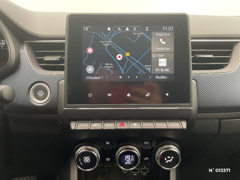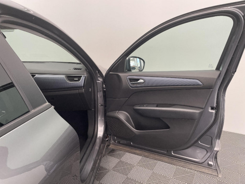 Coques de rétroviseurs ton caisse / Indicateur de changement de vitesse / Alerte Distance Sécurité / Alerte d'oubli de ceinture de sécurité / Compartimentage de coffre / Kit de gonflage et de réparation des pneumatiques / Harmonie foncé / Carte Renault avec accès et démarrage mains libres avec fermeture à l'éloignement / Allumage automatique des phares et des essuis-glace avec capteur de pluie et de luminosité / Système ISOFIX (i-Size) aux places AR (latérales) / Alerte de survitesse combinéà la vitesse limite de la navigation / Feux de jour à LED avec signature lumineuse C-Shape / Programme eco mode / Aérateurs aux places AR / Lève-vitres AR électriques avec fonction anti-pincement / Purificateur d'air / Freinage actif d'urgence avec détection piétons et cyclistes / Bouton d'appel d'urgence R-Call / Sellerie tissu Noir Titane / Volant gainé en similicuir Soft Touch / Boitier connect AIVC / Navigation embarquée avec cartographie Europe / Tableau de bord avec écran couleur 4,2'' et compteurs analogiques / Compatibilité Apple CarPlay Wifi / Jantes alliage 17" Bahamas diamantées noires / Projecteurs AV full LED Pure Vision / Commutation automatique des feux de route/croisement