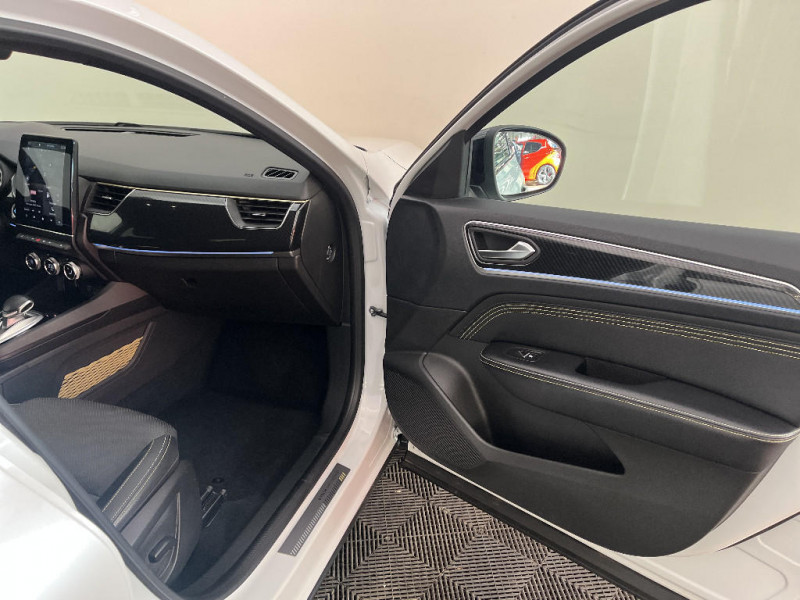 Easy Park Assist / Commutation automatique des feux de route/croisement / Kit de gonflage et de réparation des pneumatiques / Harmonie foncé / Carte Renault avec accès et démarrage mains libres avec fermeture à l'éloignement / Renault Multi-sense / Allumage automatique des phares et des essuis-glace avec capteur de pluie et de luminosité / Avertisseur de sortie de stationnement / Boite de vitesse E shifter / Détection d'obstacle latérale / Feux de jour à LED avec signature lumineuse C-Shape / Programme eco mode / Rétroviseur intérieur électrochrome sans contour / Aérateurs aux places AR / Lève-vitres AR électriques avec fonction anti-pincement / Purificateur d'air / Coques de rétroviseurs extérieures noires (avec Toit Noir) / Freinage actif d'urgence avec détection piétons et cyclistes / Indicateur de changement de vitesse / Eclairage d'ambiance / Alerte Distance Sécurité / Alerte d'oubli de ceinture de sécurité / Volant chauffant / Banquette AR avec accoudoir central / Compartimentage de coffre / Projecteurs AV full LED Pure Vision / Jantes alliage 18" silverstone diamantées avec insert gold / Coques de rétroviseurs extérieures noires / Bouton d'appel d'urgence R-Call / Volant cuir pleine fleur / Boitier connect AIVC / Tableau de bord avec écran numérique et personnalisable 10" / Easy link avec écran tactile 9.3", navigation, réplication smartphone, Bluetooth / Réhomologation E-Tech / Système ISOFIX (i-Size) aux places AR (latérales) / Alerte de survitesse combinéà la vitesse limite de la navigation / Compatibilité Apple CarPlay Wifi / Frein de parking électrique avec fonction Auto-Hold / Lame F1 Golf / Sellerie cuir/suédine E-Tech engineered avec surpiqures gold