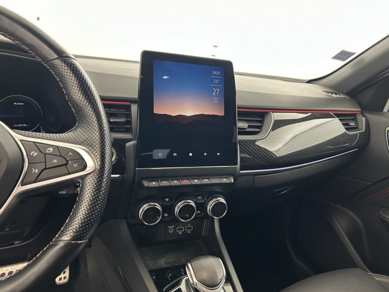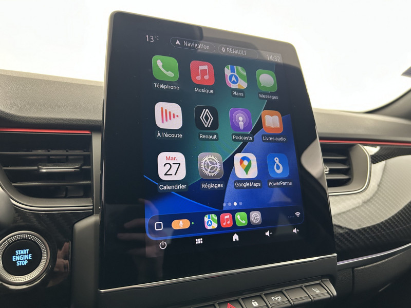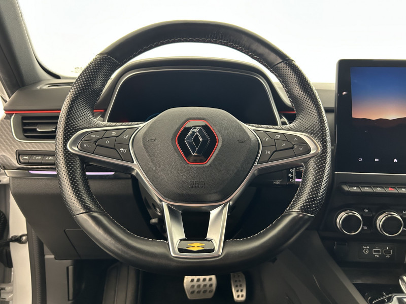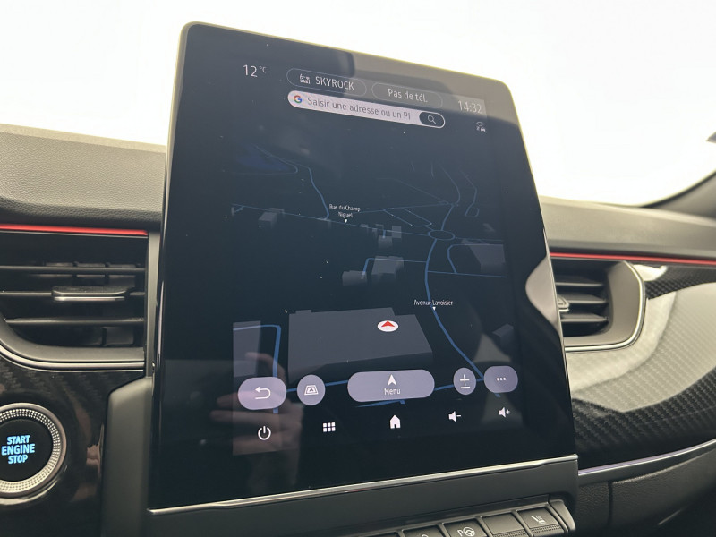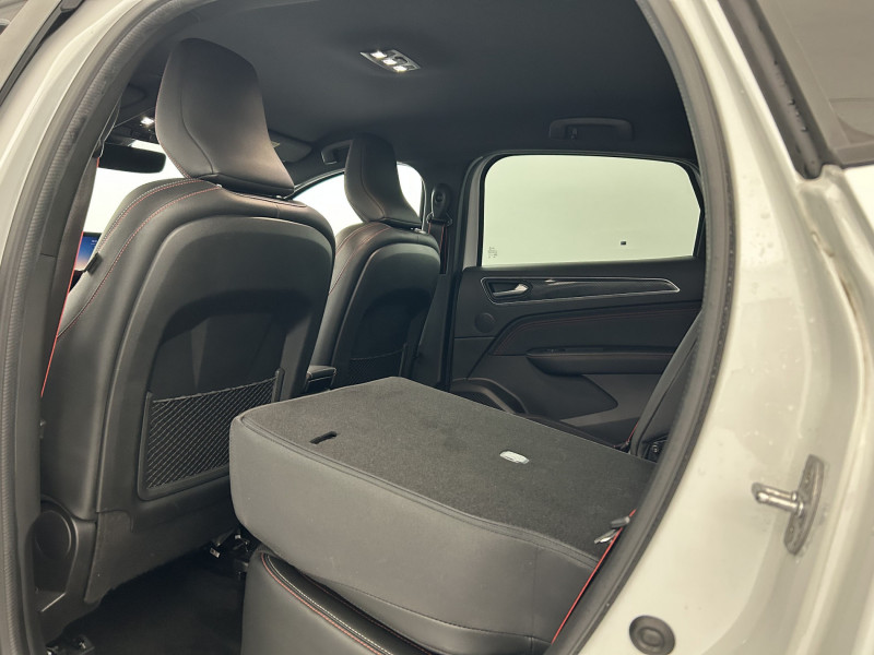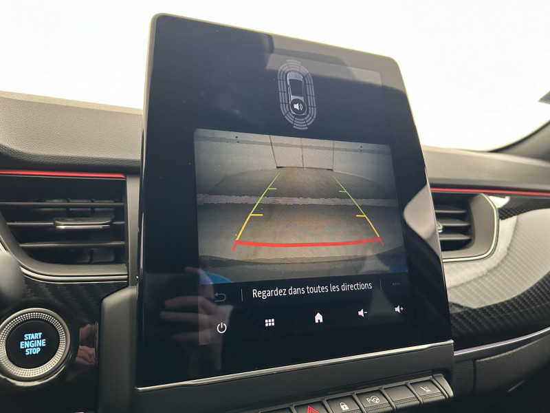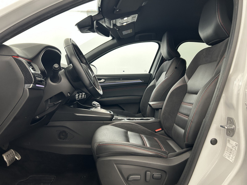 Aérateurs aux places AR / Alerte de distance de sécurité / Alerte de survitesse combinéà la vitesse limite de la navigation / Alerte d'oubli de ceinture de sécurité / Allumage automatique des phares et des essuis-glace avec capteur de pluie et de luminosité / Avertisseur de sortie de stationnement / Banquette AR avec accoudoir central / Boite de vitesse E shifter / Boitier connect AIVC / Bouton d'appel d'urgence R-Call / Carte Renault avec accès et démarrage mains libres avec fermeture à l'éloignement / Commutation automatique des feux de route/croisement / Compartimentage de coffre / Compartimentage de coffre / Coques de rétroviseurs extérieures noires (avec Toit Noir) / Design exterieur RS-Line / Design intérieur RS-Line / Détection d'obstacle latérale / Easy link avec écran tactile 9.3", navigation, réplication smartphone, Bluetooth / Easy Park Assist / Eclairage d'ambiance / Feux de jour à LED avec signature lumineuse C-Shape / Freinage actif d'urgence avec détection piétons et cyclistes / Harmonie intérieure foncée / Indicateur de changement de vitesse / Jantes alliage 18" Silverstone diamantées exclusives R.S. Line avec insert Rouge / Kit de gonflage et de réparation des pneumatiques / Lève-vitres AR électriques avec fonction anti-pincement / Programme eco mode / Projecteurs AV full LED Pure Vision / Purificateur d'air / Renault Multi-sense / Rétroviseur intérieur électrochrome sans contour / Sellerie mixte cuir-suédine surpiqués rouge / Signature R.S. Line / Système ISOFIX (i-Size) aux places AR (latérales) / Tableau de bord avec écran numérique couleur 7'' / Volant chauffant / Volant cuir pleine fleur /