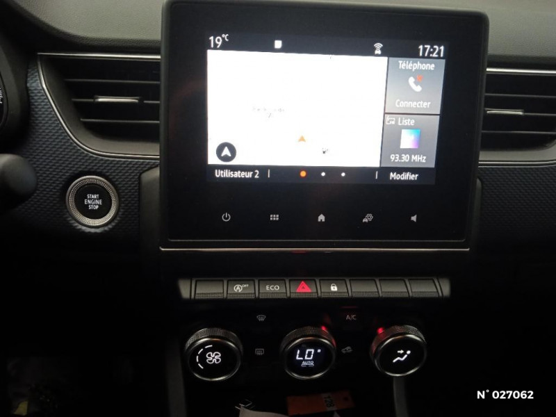 Projecteurs AV full LED Pure Vision / Commutation automatique des feux de route/croisement / Kit de gonflage et de réparation des pneumatiques / Harmonie foncé / Carte Renault avec accès et démarrage mains libres avec fermeture à l'éloignement / Allumage automatique des phares et des essuis-glace avec capteur de pluie et de luminosité / Feux de jour à LED avec signature lumineuse C-Shape / Programme eco mode / Aérateurs aux places AR / Lève-vitres AR électriques avec fonction anti-pincement / Purificateur d'air / Freinage actif d'urgence avec détection piétons et cyclistes / Bouton d'appel d'urgence R-Call / Sellerie tissu Noir Titane / Volant gainé en similicuir Soft Touch / Boitier connect AIVC / Indicateur de changement de vitesse / Alerte Distance Sécurité / Alerte d'oubli de ceinture de sécurité / Compartimentage de coffre / Coques de rétroviseurs ton caisse / Navigation embarquée avec cartographie Europe / Tableau de bord avec écran couleur 4,2'' et compteurs analogiques / Système ISOFIX (i-Size) aux places AR (latérales) / Alerte de survitesse combinéà la vitesse limite de la navigation / Compatibilité Apple CarPlay Wifi / Projecteurs AV LED pure vision / Jantes alliage 17" Bahamas diamantées noires