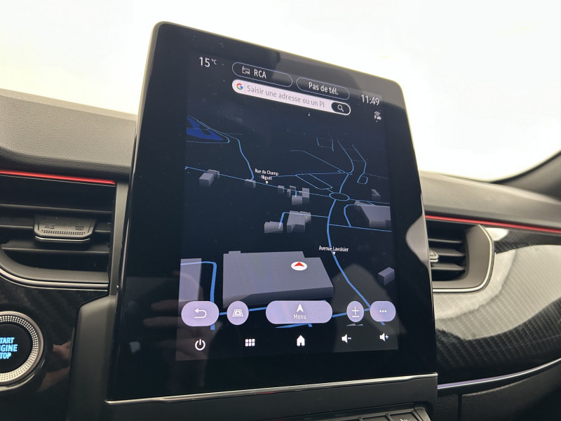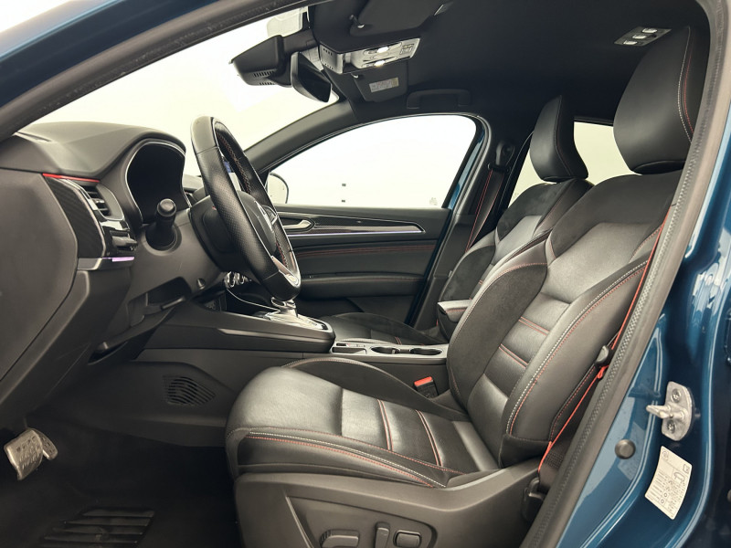 Aérateurs aux places AR / Alerte de distance de sécurité / Alerte de survitesse combinéà la vitesse limite de la navigation / Alerte d'oubli de ceinture de sécurité / Allumage automatique des phares et des essuis-glace avec capteur de pluie et de luminosité / Avertisseur de sortie de stationnement / Banquette AR avec accoudoir central / Boite de vitesse E shifter / Boitier connect AIVC / Bouton d'appel d'urgence R-Call / Carte Renault avec accès et démarrage mains libres avec fermeture à l'éloignement / Commutation automatique des feux de route/croisement / Compartimentage de coffre / Compartimentage de coffre / Coques de rétroviseurs extérieures noires (avec Toit Noir) / Design exterieur RS-Line / Design intérieur RS-Line / Détection d'obstacle latérale / Easy link avec écran tactile 9.3", navigation, réplication smartphone, Bluetooth / Easy Park Assist / Eclairage d'ambiance / Feux de jour à LED avec signature lumineuse C-Shape / Freinage actif d'urgence avec détection piétons et cyclistes / Harmonie intérieure foncée / Indicateur de changement de vitesse / Jantes alliage 18" Silverstone diamantées exclusives R.S. Line avec insert Rouge / Kit de gonflage et de réparation des pneumatiques / Lève-vitres AR électriques avec fonction anti-pincement / Programme eco mode / Projecteurs AV full LED Pure Vision / Purificateur d'air / Renault Multi-sense / Rétroviseur intérieur électrochrome sans contour / Sellerie mixte cuir-suédine surpiqués rouge / Signature R.S. Line / Système ISOFIX (i-Size) aux places AR (latérales) / Tableau de bord avec écran numérique couleur 7'' / Volant chauffant / Volant cuir pleine fleur /