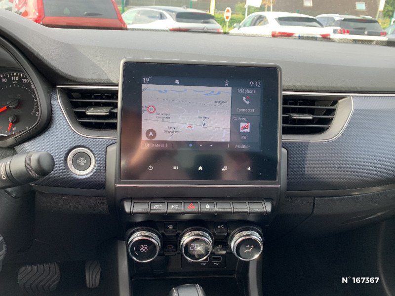 Carte Renault avec accès et démarrage mains libres avec fermeture à l'éloignement / Allumage automatique des phares et des essuis-glace avec capteur de pluie et de luminosité / Feux de jour à LED avec signature lumineuse C-Shape / Programme eco mode / Aérateurs aux places AR / Lève-vitres AR électriques avec fonction anti-pincement / Purificateur d'air / Freinage actif d'urgence avec détection piétons et cyclistes / Coques de rétroviseurs ton caisse / Indicateur de changement de vitesse / Alerte Distance Sécurité / Alerte d'oubli de ceinture de sécurité / Compartimentage de coffre / Projecteurs AV full LED Pure Vision / Commutation automatique des feux de route/croisement / Kit de gonflage et de réparation des pneumatiques / Harmonie foncé / Bouton d'appel d'urgence R-Call / Sellerie tissu Noir Titane / Volant gainé en similicuir Soft Touch / Boitier connect AIVC / Navigation embarquée avec cartographie Europe / Tableau de bord avec écran couleur 4,2'' et compteurs analogiques / Système ISOFIX (i-Size) aux places AR (latérales) / Alerte de survitesse combinéà la vitesse limite de la navigation / Compatibilité Apple CarPlay Wifi / Projecteurs AV LED pure vision / Jantes alliage 17" Bahamas diamantées noires