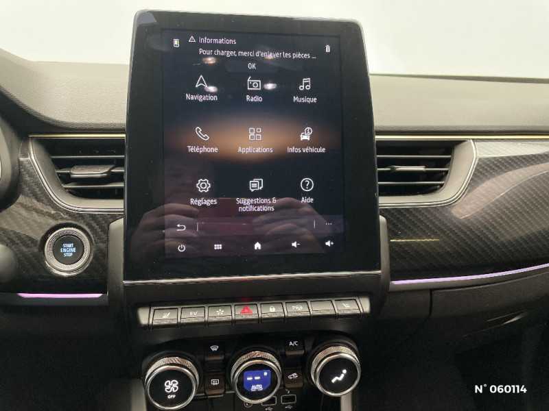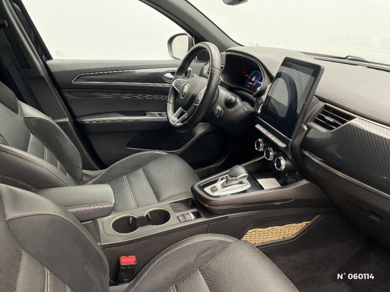 Alerte de survitesse combinéà la vitesse limite de la navigation / Compatibilité Apple CarPlay Wifi / Frein de parking électrique avec fonction Auto-Hold / Lame F1 Golf / Sellerie cuir/suédine E-Tech engineered avec surpiqures gold / Jantes alliage 18" silverstone diamantées avec insert gold / Coques de rétroviseurs extérieures noires / Indicateur de changement de vitesse / Eclairage d'ambiance / Alerte Distance Sécurité / Alerte d'oubli de ceinture de sécurité / Volant chauffant / Banquette AR avec accoudoir central / Compartimentage de coffre / Projecteurs AV full LED Pure Vision / Easy Park Assist / Commutation automatique des feux de route/croisement / Kit de gonflage et de réparation des pneumatiques / Harmonie foncé / Carte Renault avec accès et démarrage mains libres avec fermeture à l'éloignement / Renault Multi-sense / Allumage automatique des phares et des essuis-glace avec capteur de pluie et de luminosité / Avertisseur de sortie de stationnement / Boite de vitesse E shifter / Détection d'obstacle latérale / Feux de jour à LED avec signature lumineuse C-Shape / Programme eco mode / Rétroviseur intérieur électrochrome sans contour / Aérateurs aux places AR / Lève-vitres AR électriques avec fonction anti-pincement / Purificateur d'air / Coques de rétroviseurs extérieures noires (avec Toit Noir) / Freinage actif d'urgence avec détection piétons et cyclistes / Bouton d'appel d'urgence R-Call / Volant cuir pleine fleur / Boitier connect AIVC / Tableau de bord avec écran numérique et personnalisable 10" / Easy link avec écran tactile 9.3", navigation, réplication smartphone, Bluetooth / Réhomologation E-Tech / Système ISOFIX (i-Size) aux places AR (latérales)