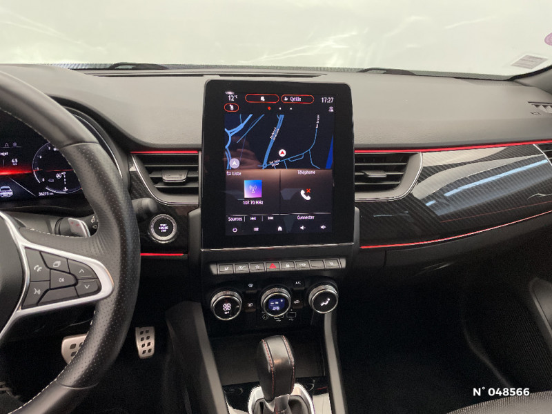 Boitier connect AIVC / Cartographie France / Cartographie Standard / Système multimédia EASY LINK avec écran tactile 9,3", navigation, Bluetooth / Indicateur de changement de vitesse / Eclairage d'ambiance / Alerte Distance Sécurité / Alerte d'oubli de ceinture de sécurité / Volant chauffant / Kit de gonflage et de réparation des pneumatiques / Harmonie foncé / Système ISOFIX (i-Size) aux places latérales AR et passager AV / Design exterieur RS-Line / Design intérieur RS-Line / Carte Renault avec accès et démarrage mains libres avec fermeture à l'éloignement / Pneu standard / Renault Multi-sense / Alerte de survitesse combinéà la vitesse limite de la navigation / Allumage automatique des phares et des essuis-glace avec capteur de pluie et de luminosité / Avertisseur de sortie de stationnement / Détection d'obstacle latérale / Feux de jour à LED avec signature lumineuse C-Shape / Monte banalisée / Programme eco mode / Rétroviseur intérieur électrochrome sans contour / Aérateurs aux places AR / Lève-vitres AR électriques avec fonction anti-pincement / Purificateur d'air / Coques de rétroviseurs extérieures noires (avec Toit Noir) / Freinage actif d'urgence avec détection piétons et cyclistes / Bouton d'appel d'urgence R-Call / Sellerie mixte cuir-suédine surpiqués rouge / Signature R.S. Line / Volant cuir pleine fleur / Tableau de bord avec écran numérique couleur 7'' / Jantes alliage 18" Silverstone diamantées exclusives R.S. Line avec insert Rouge / Easy link avec écran tactile 9.3", navigation, réplication smartphone, Bluetooth / Banquette AR avec accoudoir central / Compartimentage de coffre / Appellation Renault / Projecteurs AV full LED Pure Vision / Easy Park Assist / Commutation automatique des feux de route/croisement