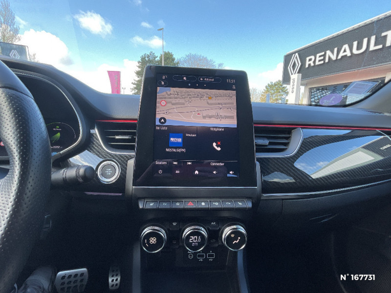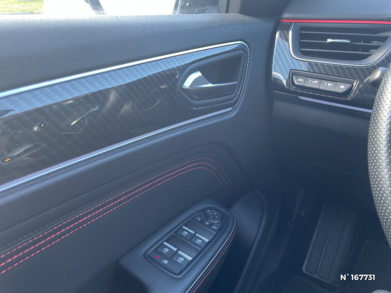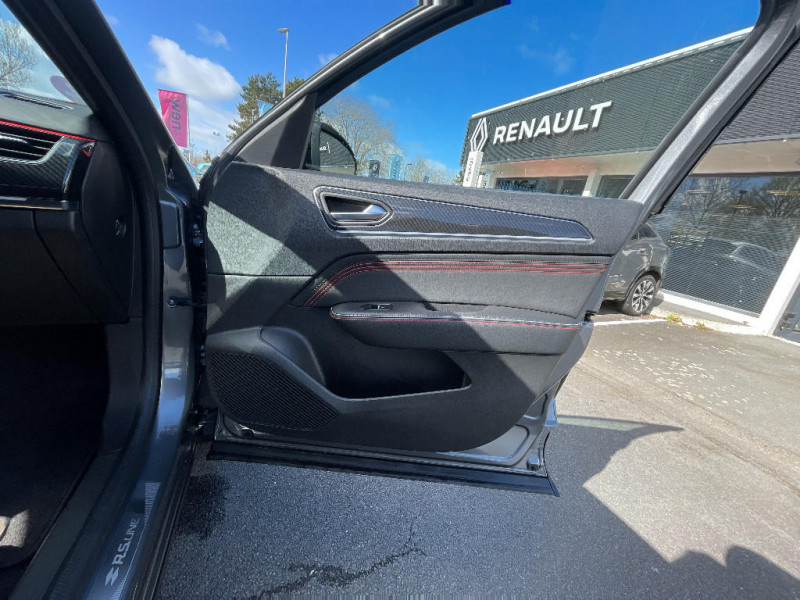 Volant cuir pleine fleur / Alerte Distance Sécurité / Alerte d'oubli de ceinture de sécurité / Volant chauffant / Banquette AR avec accoudoir central / Compartimentage de coffre / Projecteurs AV full LED Pure Vision / Easy Park Assist / Boitier connect AIVC / Système multimédia EASY LINK avec écran tactile 9,3", navigation, Bluetooth / Tableau de bord avec écran numérique couleur 7'' / Jantes alliage 18" Silverstone diamantées exclusives R.S. Line avec insert Rouge / Easy link avec écran tactile 9.3", navigation, réplication smartphone, Bluetooth / Système ISOFIX (i-Size) aux places AR (latérales) / Coques de rétroviseurs extérieures noires (avec Toit Noir) / Freinage actif d'urgence avec détection piétons et cyclistes / Bouton d'appel d'urgence R-Call / Sellerie mixte cuir-suédine surpiqués rouge / Signature R.S. Line / Alerte de survitesse combinéà la vitesse limite de la navigation / Allumage automatique des phares et des essuis-glace avec capteur de pluie et de luminosité / Avertisseur de sortie de stationnement / Boite de vitesse E shifter / Détection d'obstacle latérale / Feux de jour à LED avec signature lumineuse C-Shape / Programme eco mode / Rétroviseur intérieur électrochrome sans contour / Aérateurs aux places AR / Lève-vitres AR électriques avec fonction anti-pincement / Purificateur d'air / Commutation automatique des feux de route/croisement / Kit de gonflage et de réparation des pneumatiques / Harmonie foncé / Système ISOFIX (i-Size) aux places latérales AR et passager AV / Design exterieur RS-Line / Design intérieur RS-Line / Carte Renault avec accès et démarrage mains libres avec fermeture à l'éloignement / Renault Multi-sense / Indicateur de changement de vitesse / Eclairage d'ambiance