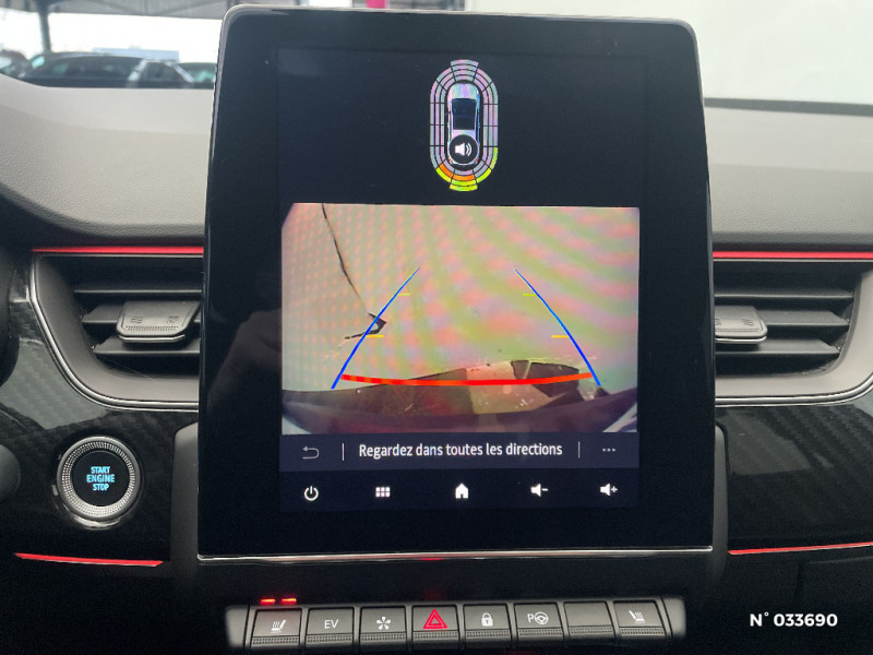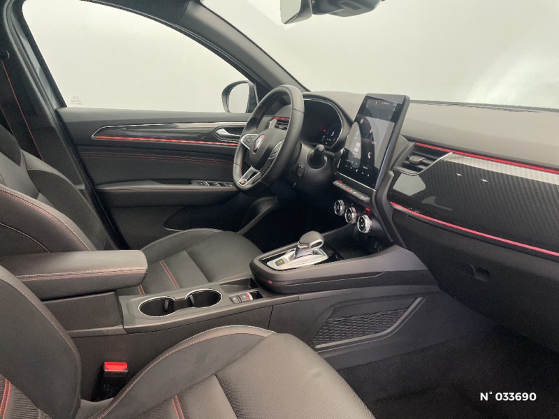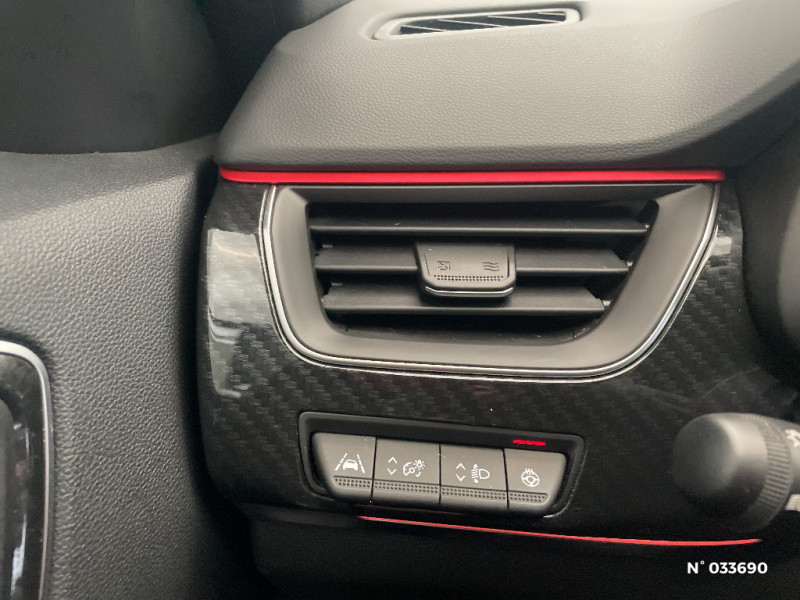 Boitier connect AIVC / Tableau de bord avec écran numérique couleur 7'' / Jantes alliage 18" Silverstone diamantées exclusives R.S. Line avec insert Rouge / Easy link avec écran tactile 9.3", navigation, réplication smartphone, Bluetooth / Système ISOFIX (i-Size) aux places AR (latérales) / Alerte de survitesse combinéà la vitesse limite de la navigation / Indicateur de changement de vitesse / Eclairage d'ambiance / Alerte Distance Sécurité / Alerte d'oubli de ceinture de sécurité / Volant chauffant / Banquette AR avec accoudoir central / Compartimentage de coffre / Projecteurs AV full LED Pure Vision / Easy Park Assist / Commutation automatique des feux de route/croisement / Kit de gonflage et de réparation des pneumatiques / Harmonie foncé / Système ISOFIX (i-Size) aux places latérales AR et passager AV / Design exterieur RS-Line / Design intérieur RS-Line / Carte Renault avec accès et démarrage mains libres avec fermeture à l'éloignement / Renault Multi-sense / Alerte collision AR et freinage actif d'urgence AR piéton / Allumage automatique des phares et des essuis-glace avec capteur de pluie et de luminosité / Avertisseur de sortie de stationnement / Boite de vitesse E shifter / Détection d'obstacle latérale / Feux de jour à LED avec signature lumineuse C-Shape / Programme eco mode / Rétroviseur intérieur électrochrome sans contour / Aérateurs aux places AR / Lève-vitres AR électriques avec fonction anti-pincement / Purificateur d'air / Coques de rétroviseurs extérieures noires (avec Toit Noir) / Freinage actif d'urgence avec détection piétons et cyclistes / Bouton d'appel d'urgence R-Call / Sellerie mixte cuir-suédine surpiqués rouge / Signature R.S. Line / Volant cuir pleine fleur