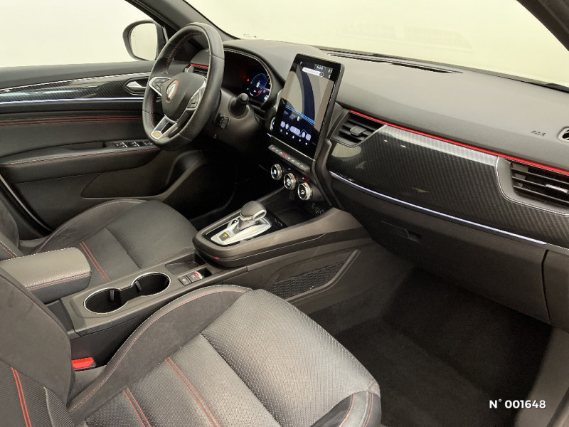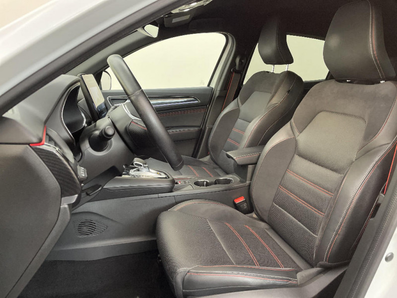 Alerte d'oubli de ceinture de sécurité / Volant cuir pleine fleur / Boitier connect AIVC / Système multimédia EASY LINK avec écran tactile 9,3", navigation, Bluetooth / Tableau de bord avec écran numérique couleur 7'' / Jantes alliage 18" Silverstone diamantées exclusives R.S. Line avec insert Rouge / Easy link avec écran tactile 9.3", navigation, réplication smartphone, Bluetooth / Système ISOFIX (i-Size) aux places AR (latérales) / Projecteurs AV full LED Pure Vision / Easy Park Assist / Commutation automatique des feux de route/croisement / Kit de gonflage et de réparation des pneumatiques / Harmonie foncé / Système ISOFIX (i-Size) aux places latérales AR et passager AV / Design exterieur RS-Line / Design intérieur RS-Line / Carte Renault avec accès et démarrage mains libres avec fermeture à l'éloignement / Renault Multi-sense / Alerte de survitesse combinéà la vitesse limite de la navigation / Allumage automatique des phares et des essuis-glace avec capteur de pluie et de luminosité / Avertisseur de sortie de stationnement / Boite de vitesse E shifter / Détection d'obstacle latérale / Feux de jour à LED avec signature lumineuse C-Shape / Programme eco mode / Rétroviseur intérieur électrochrome sans contour / Aérateurs aux places AR / Lève-vitres AR électriques avec fonction anti-pincement / Purificateur d'air / Coques de rétroviseurs extérieures noires (avec Toit Noir) / Freinage actif d'urgence avec détection piétons et cyclistes / Bouton d'appel d'urgence R-Call / Sellerie mixte cuir-suédine surpiqués rouge / Signature R.S. Line / Volant chauffant / Banquette AR avec accoudoir central / Compartimentage de coffre / Indicateur de changement de vitesse / Eclairage d'ambiance / Alerte Distance Sécurité