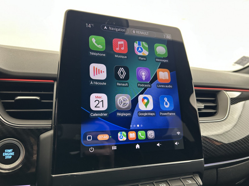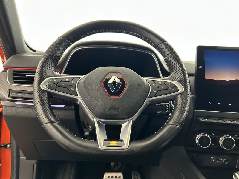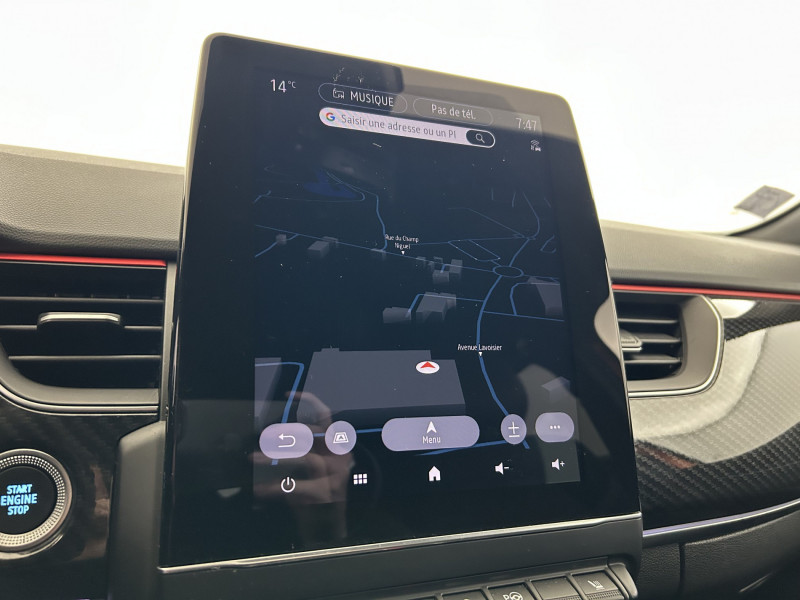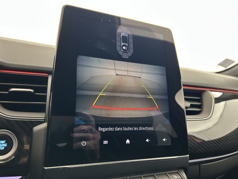 Aérateurs aux places AR / Alerte de distance de sécurité / Alerte de survitesse combinéà la vitesse limite de la navigation / Alerte d'oubli de ceinture de sécurité / Allumage automatique des phares et des essuis-glace avec capteur de pluie et de luminosité / Avertisseur de sortie de stationnement / Banquette AR avec accoudoir central / Boite de vitesse E shifter / Boitier connect AIVC / Bouton d'appel d'urgence R-Call / Carte Renault avec accès et démarrage mains libres avec fermeture à l'éloignement / Commutation automatique des feux de route/croisement / Compartimentage de coffre / Compartimentage de coffre / Coques de rétroviseurs extérieures noires (avec Toit Noir) / Design exterieur RS-Line / Design intérieur RS-Line / Détection d'obstacle latérale / Easy link avec écran tactile 9.3", navigation, réplication smartphone, Bluetooth / Easy Park Assist / Eclairage d'ambiance / Feux de jour à LED avec signature lumineuse C-Shape / Freinage actif d'urgence avec détection piétons et cyclistes / Harmonie intérieure foncée / Indicateur de changement de vitesse / Jantes alliage 18" Silverstone diamantées exclusives R.S. Line avec insert Rouge / Kit de gonflage et de réparation des pneumatiques / Lève-vitres AR électriques avec fonction anti-pincement / Programme eco mode / Projecteurs AV full LED Pure Vision / Purificateur d'air / Renault Multi-sense / Rétroviseur intérieur électrochrome sans contour / Sellerie mixte cuir-suédine surpiqués rouge / Signature R.S. Line / Système ISOFIX (i-Size) aux places AR (latérales) / Tableau de bord avec écran numérique couleur 7'' / Volant chauffant / Volant cuir pleine fleur /