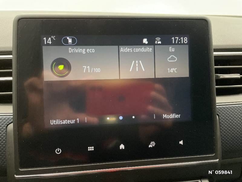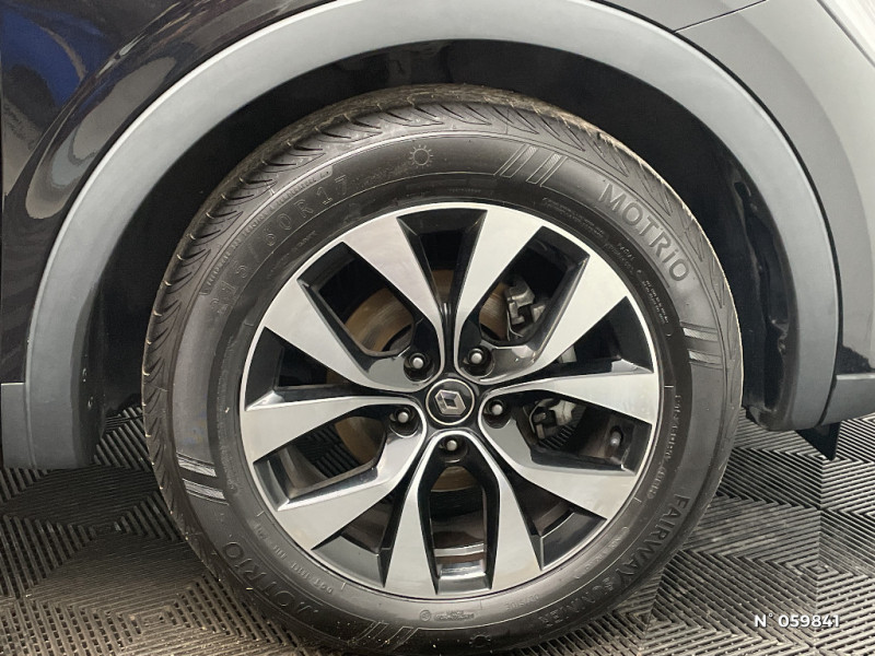 Indicateur de changement de vitesse / Alerte Distance Sécurité / Alerte d'oubli de ceinture de sécurité / Compartimentage de coffre / Navigation embarquée avec cartographie Europe / Projecteurs AV full LED Pure Vision / Commutation automatique des feux de route/croisement / Kit de gonflage et de réparation des pneumatiques / Harmonie foncé / Carte Renault avec accès et démarrage mains libres avec fermeture à l'éloignement / Allumage automatique des phares et des essuis-glace avec capteur de pluie et de luminosité / Feux de jour à LED avec signature lumineuse C-Shape / Programme eco mode / Aérateurs aux places AR / Lève-vitres AR électriques avec fonction anti-pincement / Purificateur d'air / Freinage actif d'urgence avec détection piétons et cyclistes / Bouton d'appel d'urgence R-Call / Sellerie tissu Noir Titane / Volant gainé en similicuir Soft Touch / Boitier connect AIVC / Tableau de bord avec écran couleur 4,2'' et compteurs analogiques / Système ISOFIX (i-Size) aux places AR (latérales) / Alerte de survitesse combinéà la vitesse limite de la navigation / Compatibilité Apple CarPlay Wifi / Jantes alliage 17" Bahamas diamantées noires / Coques de rétroviseurs ton caisse