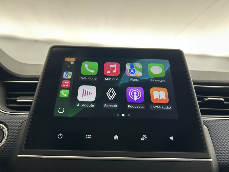 Allumage automatique des phares et des essuis-glace avec capteur de pluie et de luminosité: / Jantes alliage 17" Bahamas diamantées noires: / Projecteurs AV full LED Pure Vision: / Projecteurs AV LED pure vision: / Alerte d'oubli de ceinture de sécurité: / Alerte de distance de sécurité: / Aérateurs aux places AR: / Boitier connect AIVC: / Bouton d'appel d'urgence R-Call: / Carte Renault avec accès et démarrage mains libres avec fermeture à l'éloignement: / Compartimentage de coffre: / Compartimentage de coffre: / Coques de rétroviseurs extérieures ton caisse: / Easy Link avec écran tactile 7", réplication smartphone, radio DAB, Bluetooth, wifi, 6 haut-parleurs: / Freinage actif d'urgence avec détection piétons et cyclistes: / Harmonie intérieure foncée: / Indicateur de changement de vitesse: / Kit de gonflage et de réparation des pneumatiques: / Lève-vitres AR électriques avec fonction anti-pincement: / Programme eco mode: / Purificateur d'air: / Réhomologation E-Tech: / Système ISOFIX (i-Size) aux places AR (latérales): / Tableau de bord avec écran numérique couleur 7'': / Volant gainé en textile enduit grainé Soft Touch: / Sellerie tissu Noir Titane: /