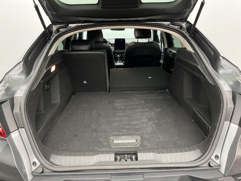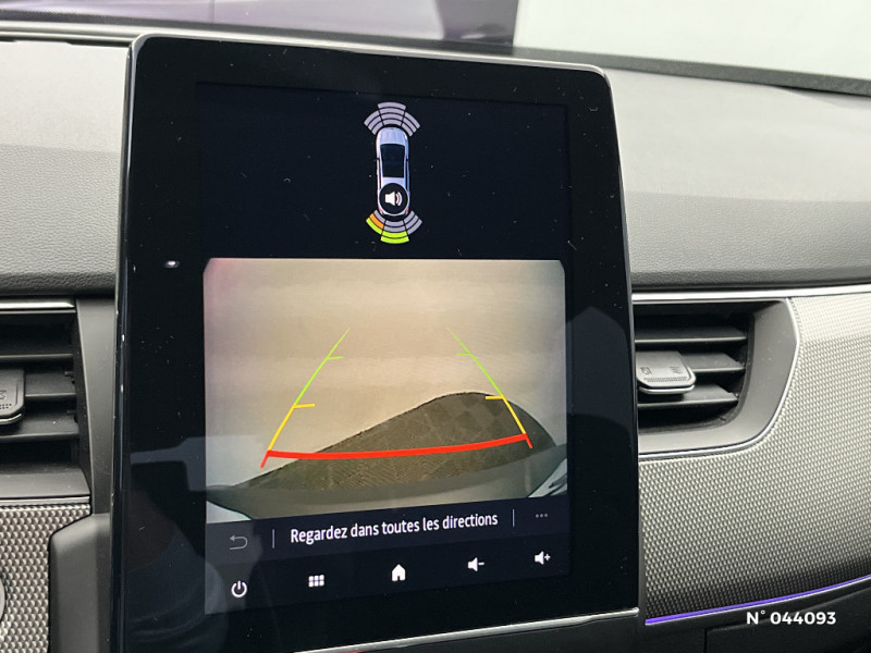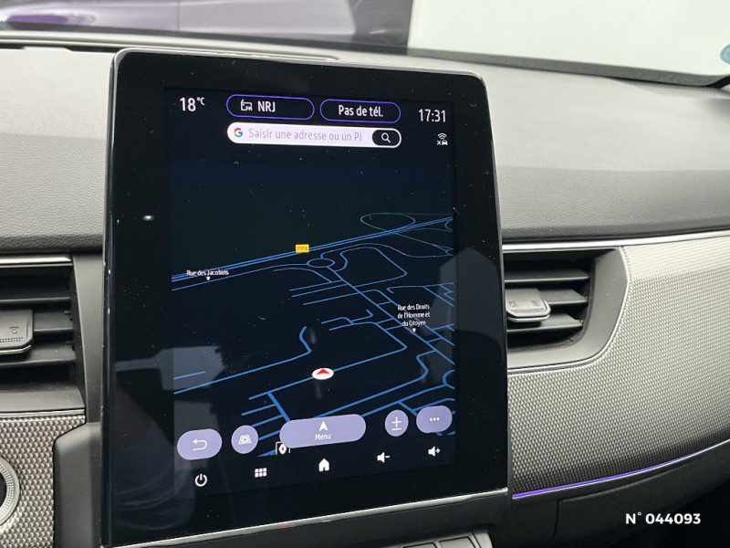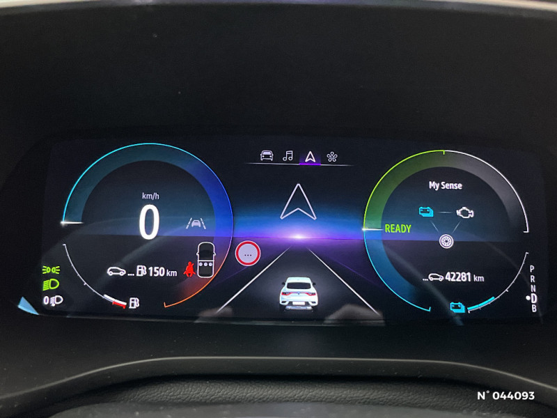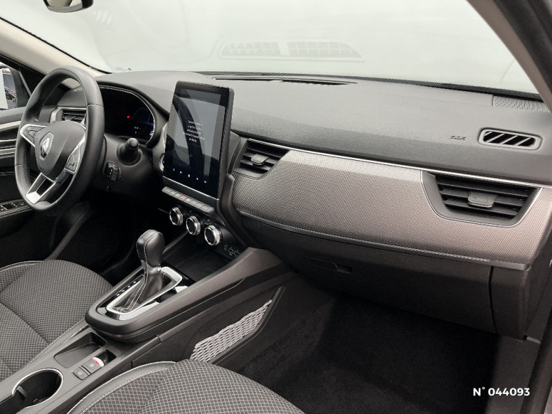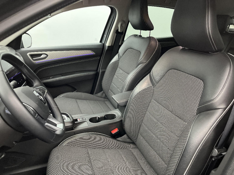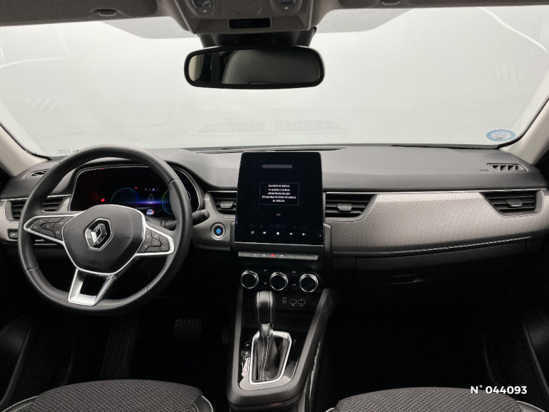 Commutation automatique des feux de route/croisement / Kit de gonflage et de réparation des pneumatiques / Harmonie foncé / Carte Renault avec accès et démarrage mains libres avec fermeture à l'éloignement / Renault Multi-sense / Allumage automatique des phares et des essuis-glace avec capteur de pluie et de luminosité / Avertisseur de sortie de stationnement / Feux de jour à LED avec signature lumineuse C-Shape / Programme eco mode / Aérateurs aux places AR / Rétroviseur intérieur électrochrome / Coques de rétroviseurs ton caisse / Peinture opaque / Indicateur de changement de vitesse / Eclairage d'ambiance / Alerte Distance Sécurité / Alerte d'oubli de ceinture de sécurité / Banquette AR avec accoudoir central / Compartimentage de coffre / Lève-vitres AR électriques avec fonction anti-pincement / Purificateur d'air / Jantes alliage 18" Pasadena diamantées noires / Freinage actif d'urgence avec détection piétons et cyclistes / Bouton d'appel d'urgence R-Call / Volant gainé en similicuir Soft Touch / Boitier connect AIVC / Tableau de bord avec écran numérique et personnalisable 10" / Sellerie similicuir-tissu Noir Titane / Easy link avec écran tactile 9.3", navigation, réplication smartphone, Bluetooth / Réhomologation E-Tech / Volant non chauffant / Système ISOFIX (i-Size) aux places AR (latérales) / Alerte de survitesse combinéà la vitesse limite de la navigation / Compatibilité Apple CarPlay Wifi / Frein de parking électrique avec fonction Auto-Hold / Projecteurs AV full LED Pure Vision