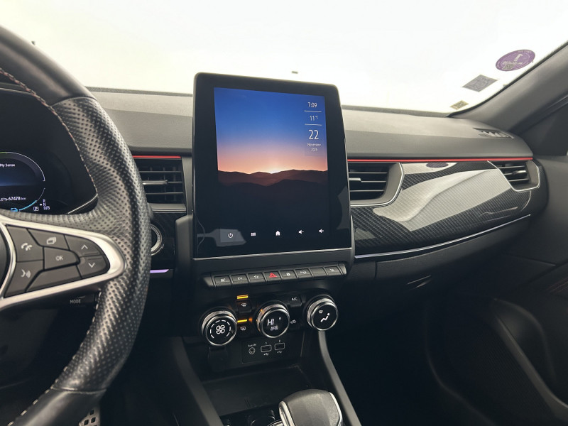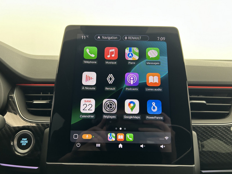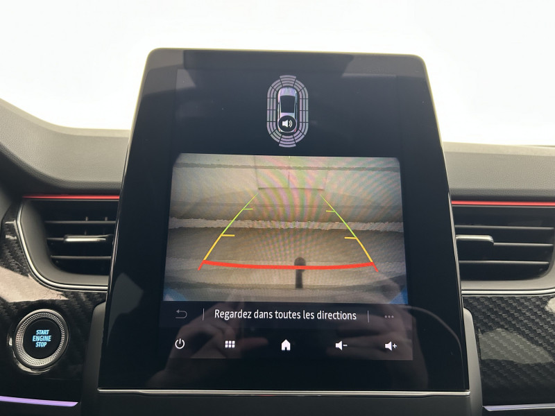 Aérateurs aux places AR / Alerte de distance de sécurité / Alerte de survitesse combinéà la vitesse limite de la navigation / Alerte d'oubli de ceinture de sécurité / Allumage automatique des phares et des essuis-glace avec capteur de pluie et de luminosité / Avertisseur de sortie de stationnement / Banquette AR avec accoudoir central / Boite de vitesse E shifter / Boitier connect AIVC / Bouton d'appel d'urgence R-Call / Carte Renault avec accès et démarrage mains libres avec fermeture à l'éloignement / Commutation automatique des feux de route/croisement / Compartimentage de coffre / Compartimentage de coffre / Coques de rétroviseurs extérieures noires (avec Toit Noir) / Design exterieur RS-Line / Design intérieur RS-Line / Détection d'obstacle latérale / Easy link avec écran tactile 9.3", navigation, réplication smartphone, Bluetooth / Easy Park Assist / Eclairage d'ambiance / Feux de jour à LED avec signature lumineuse C-Shape / Freinage actif d'urgence avec détection piétons et cyclistes / Harmonie intérieure foncée / Indicateur de changement de vitesse / Jantes alliage 18" Silverstone diamantées exclusives R.S. Line avec insert Rouge / Kit de gonflage et de réparation des pneumatiques / Lève-vitres AR électriques avec fonction anti-pincement / Programme eco mode / Projecteurs AV full LED Pure Vision / Purificateur d'air / Renault Multi-sense / Rétroviseur intérieur électrochrome sans contour / Sellerie mixte cuir-suédine surpiqués rouge / Signature R.S. Line / Système ISOFIX (i-Size) aux places AR (latérales) / Tableau de bord avec écran numérique couleur 7'' / Volant chauffant / Volant cuir pleine fleur /