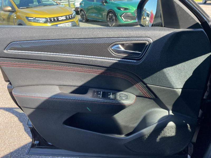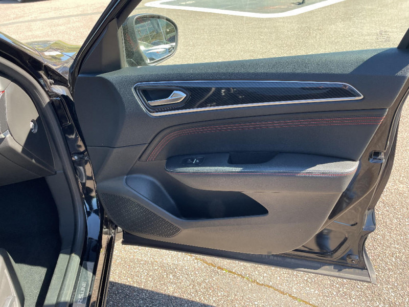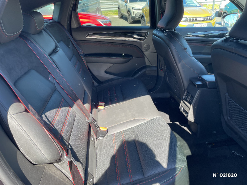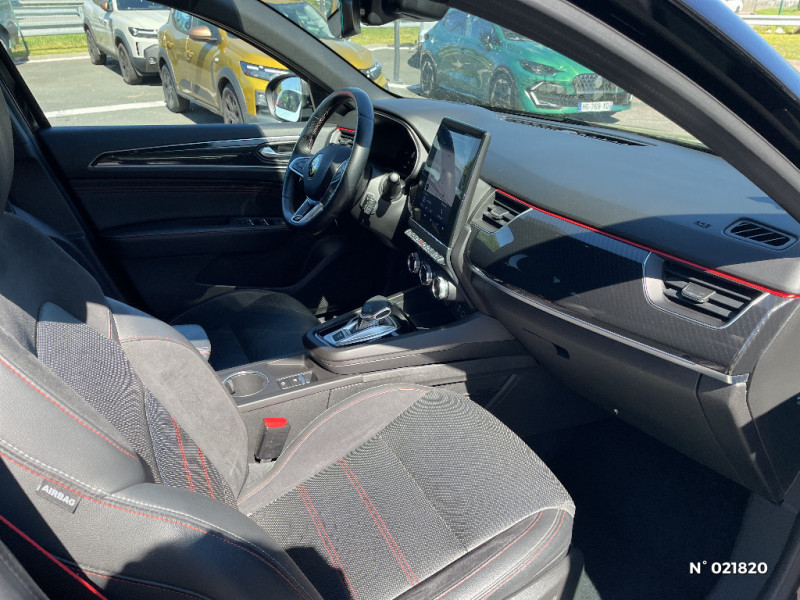Système multimédia EASY LINK avec écran tactile 9,3", navigation, Bluetooth / Easy Park Assist / Commutation automatique des feux de route/croisement / Indicateur de changement de vitesse / Eclairage d'ambiance / Alerte Distance Sécurité / Alerte d'oubli de ceinture de sécurité / Volant chauffant / Banquette AR avec accoudoir central / Compartimentage de coffre / Projecteurs AV full LED Pure Vision / Tableau de bord avec écran numérique couleur 7'' / Jantes alliage 18" Silverstone diamantées exclusives R.S. Line avec insert Rouge / Easy link avec écran tactile 9.3", navigation, réplication smartphone, Bluetooth / Système ISOFIX (i-Size) aux places AR (latérales) / Kit de gonflage et de réparation des pneumatiques / Harmonie foncé / Système ISOFIX (i-Size) aux places latérales AR et passager AV / Design exterieur RS-Line / Design intérieur RS-Line / Carte Renault avec accès et démarrage mains libres avec fermeture à l'éloignement / Renault Multi-sense / Alerte de survitesse combinéà la vitesse limite de la navigation / Allumage automatique des phares et des essuis-glace avec capteur de pluie et de luminosité / Avertisseur de sortie de stationnement / Boite de vitesse E shifter / Détection d'obstacle latérale / Feux de jour à LED avec signature lumineuse C-Shape / Programme eco mode / Rétroviseur intérieur électrochrome sans contour / Aérateurs aux places AR / Lève-vitres AR électriques avec fonction anti-pincement / Purificateur d'air / Coques de rétroviseurs extérieures noires (avec Toit Noir) / Freinage actif d'urgence avec détection piétons et cyclistes / Bouton d'appel d'urgence R-Call / Sellerie mixte cuir-suédine surpiqués rouge / Signature R.S. Line / Volant cuir pleine fleur / Boitier connect AIVC