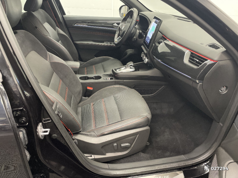 Renault Multi-sense / Indicateur de changement de vitesse / Eclairage d'ambiance / Alerte Distance Sécurité / Alerte d'oubli de ceinture de sécurité / Volant chauffant / Banquette AR avec accoudoir central / Feux de jour à LED avec signature lumineuse C-Shape / Programme eco mode / Rétroviseur intérieur électrochrome sans contour / Aérateurs aux places AR / Lève-vitres AR électriques avec fonction anti-pincement / Purificateur d'air / Alerte de survitesse combinéà la vitesse limite de la navigation / Allumage automatique des phares et des essuis-glace avec capteur de pluie et de luminosité / Avertisseur de sortie de stationnement / Boite de vitesse E shifter / Détection d'obstacle latérale / Coques de rétroviseurs extérieures noires (avec Toit Noir) / Freinage actif d'urgence avec détection piétons et cyclistes / Bouton d'appel d'urgence R-Call / Sellerie mixte cuir-suédine surpiqués rouge / Signature R.S. Line / Volant cuir pleine fleur / Compartimentage de coffre / Boitier connect AIVC / Système multimédia EASY LINK avec écran tactile 9,3", navigation, Bluetooth / Tableau de bord avec écran numérique couleur 7'' / Jantes alliage 18" Silverstone diamantées exclusives R.S. Line avec insert Rouge / Easy link avec écran tactile 9.3", navigation, réplication smartphone, Bluetooth / Système ISOFIX (i-Size) aux places AR (latérales) / Projecteurs AV full LED Pure Vision / Easy Park Assist / Commutation automatique des feux de route/croisement / Kit de gonflage et de réparation des pneumatiques / Harmonie foncé / Système ISOFIX (i-Size) aux places latérales AR et passager AV / Design exterieur RS-Line / Design intérieur RS-Line / Carte Renault avec accès et démarrage mains libres avec fermeture à l'éloignement