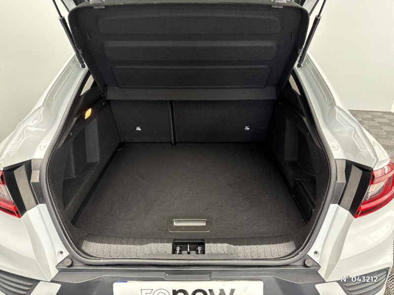 Carte Renault avec accès et démarrage mains libres avec fermeture à l'éloignement / Renault Multi-sense / Allumage automatique des phares et des essuis-glace avec capteur de pluie et de luminosité / Avertisseur de sortie de stationnement / Feux de jour à LED avec signature lumineuse C-Shape / Programme eco mode / Aérateurs aux places AR / Lève-vitres AR électriques avec fonction anti-pincement / Purificateur d'air / Jantes alliage 18" Pasadena diamantées noires / Freinage actif d'urgence avec détection piétons et cyclistes / Volant gainé en similicuir Soft Touch / Boitier connect AIVC / Tableau de bord avec écran numérique et personnalisable 10" / Sellerie similicuir-tissu Noir Titane / Easy link avec écran tactile 9.3", navigation, réplication smartphone, Bluetooth / Réhomologation E-Tech / Volant non chauffant / Système ISOFIX (i-Size) aux places AR (latérales) / Alerte de survitesse combinéà la vitesse limite de la navigation / Compatibilité Apple CarPlay Wifi / Frein de parking électrique avec fonction Auto-Hold / Bouton d'appel d'urgence R-Call / Rétroviseur intérieur électrochrome / Coques de rétroviseurs ton caisse / Peinture opaque / Indicateur de changement de vitesse / Eclairage d'ambiance / Alerte Distance Sécurité / Alerte d'oubli de ceinture de sécurité / Banquette AR avec accoudoir central / Compartimentage de coffre / Projecteurs AV full LED Pure Vision / Commutation automatique des feux de route/croisement / Kit de gonflage et de réparation des pneumatiques / Harmonie foncé