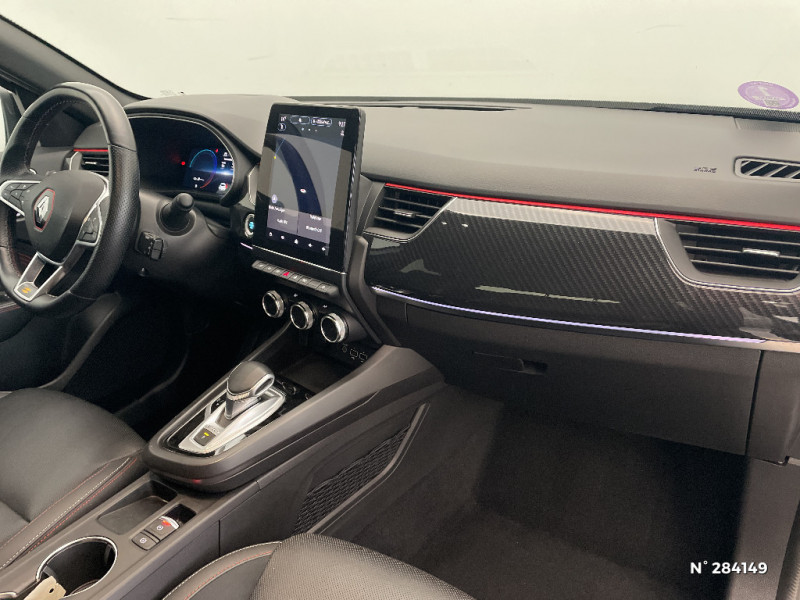Tableau de bord avec écran numérique et personnalisable 10" / Détection d'obstacle latérale / Feux de jour à LED avec signature lumineuse C-Shape / Programme eco mode / Rétroviseur intérieur électrochrome sans contour / Aérateurs aux places AR / Lève-vitres AR électriques avec fonction anti-pincement / Purificateur d'air / Coques de rétroviseurs extérieures noires (avec Toit Noir) / Freinage actif d'urgence avec détection piétons et cyclistes / Bouton d'appel d'urgence R-Call / Sellerie mixte cuir-suédine surpiqués rouge / Signature R.S. Line / Volant cuir pleine fleur / Commutation automatique des feux de route/croisement / Harmonie foncé / Design exterieur RS-Line / Design intérieur RS-Line / Carte Renault avec accès et démarrage mains libres avec fermeture à l'éloignement / Renault Multi-sense / Allumage automatique des phares et des essuis-glace avec capteur de pluie et de luminosité / Avertisseur de sortie de stationnement / Boite de vitesse E shifter / Easy Park Assist / Indicateur de changement de vitesse / Eclairage d'ambiance / Alerte Distance Sécurité / Alerte d'oubli de ceinture de sécurité / Volant chauffant / Banquette AR avec accoudoir central / Compartimentage de coffre / Projecteurs AV full LED Pure Vision / Frein de parking électrique avec fonction Auto-Hold / Jantes alliage 18" Silverstone diamantées exclusives R.S. Line avec insert Rouge / Coques de rétroviseurs extérieures noires / Easy link avec écran tactile 9.3", navigation, réplication smartphone, Bluetooth / Réhomologation E-Tech / Système ISOFIX (i-Size) aux places AR (latérales) / Alerte de survitesse combinéà la vitesse limite de la navigation / Boitier connect AIVC / Version Fast Track