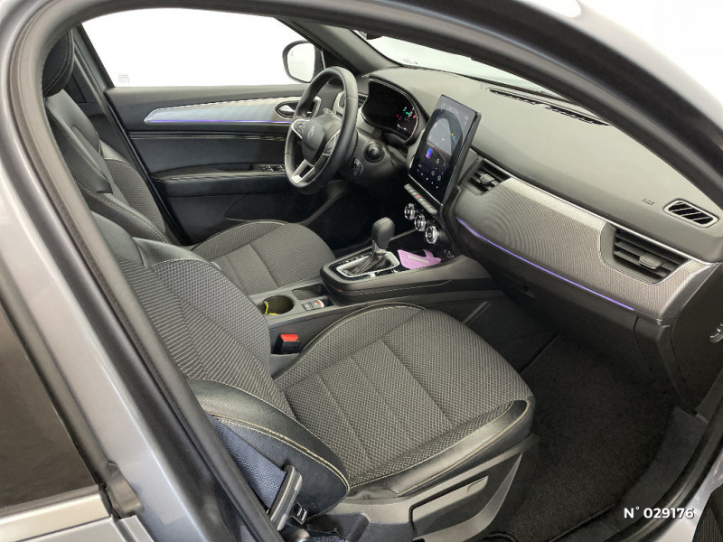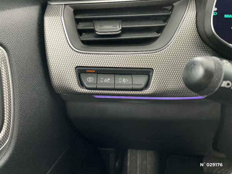 Banquette AR avec accoudoir central / Projecteurs AV full LED Pure Vision / Aérateurs aux places AR / Lève-vitres AR électriques avec fonction anti-pincement / Purificateur d'air / Freinage actif d'urgence avec détection piétons et cyclistes / Bouton d'appel d'urgence R-Call / Boitier connect AIVC / Carte Renault avec accès et démarrage mains libres avec fermeture à l'éloignement / Sans rangement de coffre / Système ISOFIX (i-Size) aux places AR (latérales) / Frein de parking électrique avec fonction Auto-Hold / Tableau de bord avec écran numérique et personnalisable 10" / Coques de rétroviseurs extérieures noires / Ciel de toit noir / Jantes alliage 18?? Silverstone diamantées / Sellerie textile enduit grainé - tissu noir / Plancher de coffre amovible / Système multimédia easy link connecté avec écran tactile 9,3, radio DAB, navigation embarquée / Alerte détection de fatigue / Prédisposition éthylotest / Lame métallique sur bouclier AV inspirée de l?univers de la Formule 1 / Détection intelligente des limitations de vitesse et prévention survitesse / My Safety switch (raccourci vers configuration personnalisée des aides à la conduite) / Sans centrage dans la voie / Rétroviseur intérieur électrochrome / Indicateur de changement de vitesse / Eclairage d'ambiance / Alerte Distance Sécurité / Kit de gonflage et de réparation des pneumatiques / Harmonie foncé / Commutation automatique des feux de route/croisement / Renault Multi-sense / Allumage automatique des phares et des essuis-glace avec capteur de pluie et de luminosité / Avertisseur de sortie de stationnement / Feux de jour à LED avec signature lumineuse C-Shape / Programme eco mode