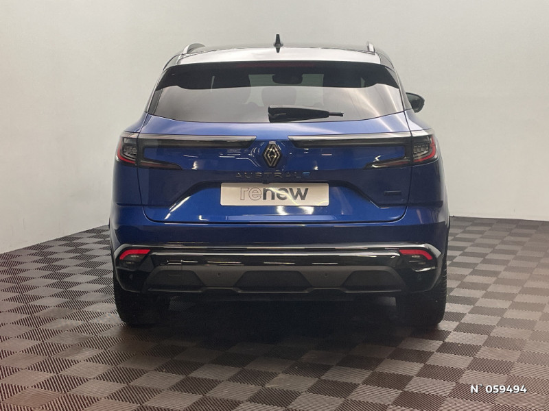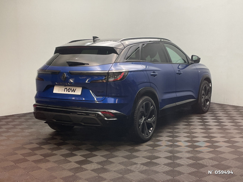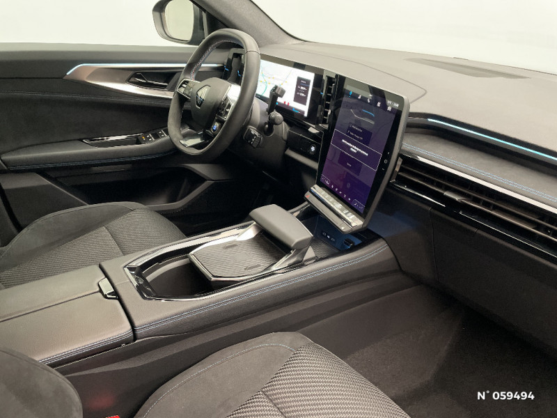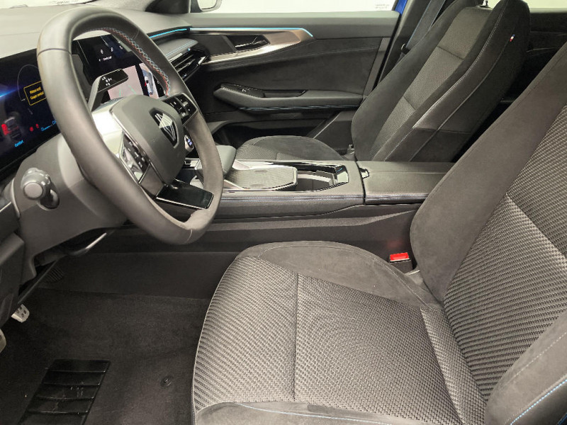 Avertisseur d'angle mort et prévention sortie de voie en cas de dépassement / Active driver assist / Classe energetique B / Barres de toit longitudinales / Peinture opaque / Aide au parking AV/AR et latéral / Commutation automatique des feux de route/croisement / Multi-sense / Carte Renault accès et démarrage mains libres / Volant chauffant / Airbags latéraux, milieu AV et rideaux / Alerte de distance de sécurité / Classe energetique 1 / Active driver assist régulateur de vitesse adaptatif intelligent + centrage dans la voie / Avertisseur de sortie de stationnement en marche AR avec freinage d'urgence automatique / Pré-équipement alarme / Sortie sécurisée des occupants / Volant cuir & Alcantara et surpiqures bleu/blanc/rouge / 2 prises USB à l'AV et à l'AR / Navigation Google Maps / Système multimédia OpenR Link avec écran tactile 12" et services Google / Tableau de bord full numérique 12,3'' / Alerte franchissement de ligne et assistant maintien dans la voie / Notice d'utilisation digitale embarqué dans le système multimédia du véhicule / Caméra 3D vision 360° / Feux AV full LED Adaptative Vision / Appuie-têtes AV grand confort / Banquette AR coulissante 1/3-2/3 avec accoudoir central / Console centrale avec repose main coulissant / Faux plancher de coffre / Hayon motorisé main libre / Miroir de surveillance enfants / Lumière d'ambiance personnalisable / Rétroviseur intérieur électrochrome sans cadre / Rétroviseurs extérieurs électriques à mémoire, dégivrants, rabattables automatiquement / Siège conducteur électrique avec réglage lombaire et fonction massage, siège passager électrique / Ciel de toit gris anthracite / Clignotants AR dynamiques / Feux AR à LED avec effet 3D / Jantes alliage 20" Daytona diamantées noir / Pack Design esprit Alpine extérieur / Pack Design esprit Alpine intérieur / Sellerie mixte tissu carbone / alcantara avec surpiqures bleu / Seuil de portes / Freinage actif d'urgence urbain (piéton + cycliste + intersection) / Kit de gonflage / Sièges avec système ISOFIX