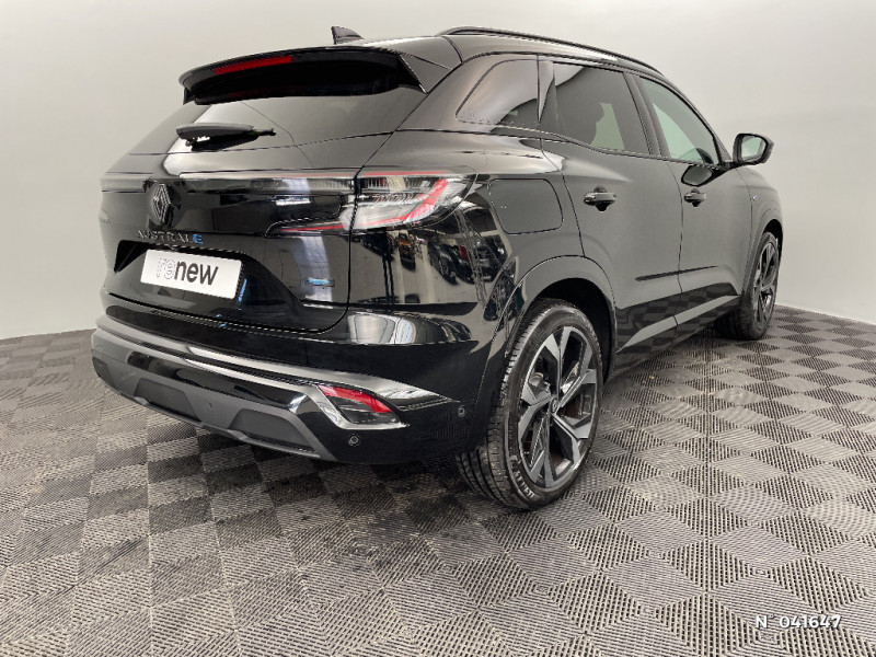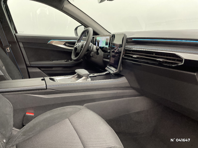 Alerte de distance de sécurité / Ciel de toit gris anthracite / Clignotants AR dynamiques / Feux AR à LED avec effet 3D / Jantes alliage 20" Daytona diamantées noir / Pack Design esprit Alpine extérieur / Pack Design esprit Alpine intérieur / Sellerie mixte tissu carbone / alcantara avec surpiqures bleu / Seuil de portes / Volant cuir & Alcantara et surpiqures bleu/blanc/rouge / 2 prises USB à l'AV et à l'AR / Kit de gonflage / Sièges avec système ISOFIX / Avertisseur d'angle mort et prévention sortie de voie en cas de dépassement / Frein de parking électrique avec fonction Auto-Hold / Caméra 3D vision 360° / Easy park assist et aides au parking avant, arrière et latérale / Feux AV full LED Adaptative Vision / Appuie-têtes AV grand confort / Navigation Google Maps / Tableau de bord full numérique 12,3'' / Alerte franchissement de ligne et assistant maintien dans la voie / Avertisseur de sortie de stationnement en marche AR avec freinage d'urgence automatique / Pré-équipement alarme / Sortie sécurisée des occupants / Active driver assist régulateur de vitesse adaptatif intelligent + centrage dans la voie / Conduite hybride prédictive / Eclairage d'accompagnement au sol avec projection logo / Système Multimédia openR link 12" : navigation, services Google, audio Arkamys Auditorium / Banquette AR coulissante 1/3-2/3 avec accoudoir central / Console centrale avec repose main coulissant / Faux plancher de coffre / Hayon motorisé main libre / Miroir de surveillance enfants / Lumière d'ambiance personnalisable / Pare-brise chauffant / Rétroviseur intérieur électrochrome sans cadre / Rétroviseurs extérieurs électriques à mémoire, dégivrants, rabattables automatiquement / Siège conducteur électrique avec réglage lombaire et fonction massage, siège passager électrique / Freinage actif d'urgence urbain (piéton + cycliste + intersection) / Barres de toit longitudinales / Commutation automatique des feux de route/croisement / Multi-sense / Carte Renault accès et démarrage mains libres / Volant chauffant / Airbags latéraux, milieu AV et rideaux
