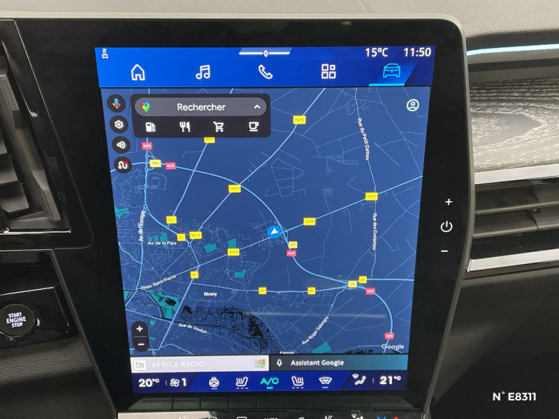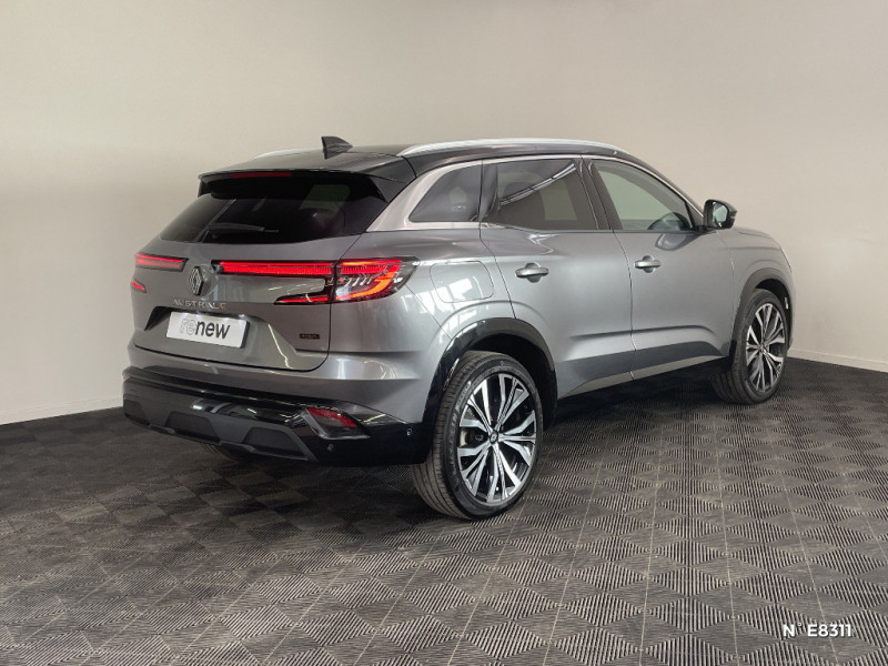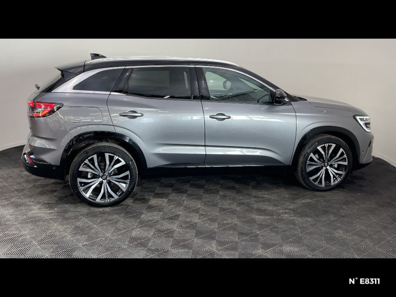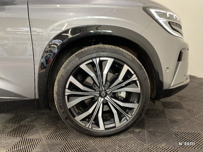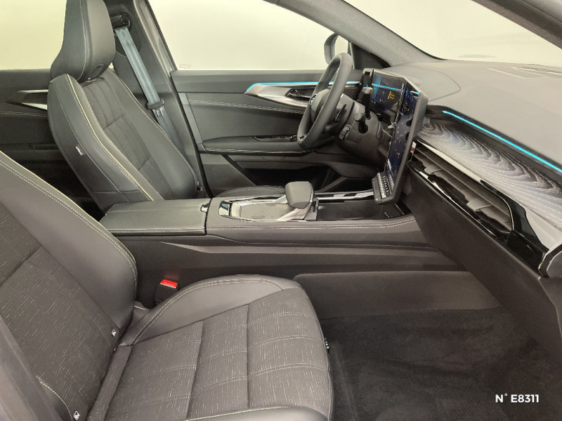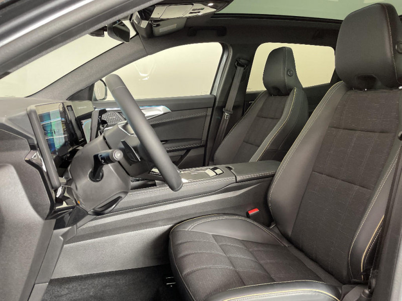 Commutation automatique des feux de route/croisement / Détection intelligente des limitations de vitesse et prévention survitesse / Easy park assist et aides au parking AV, AR et latérale / Eclairage d'accompagnement au sol avec projection logo / Faux plancher de coffre / Feux AR à LED avec effet 3D / Feux AV full LED Adaptative Vision / Frein de parking électrique avec fonction Auto-Hold / Hayon motorisé main libre / Insert de tableau de bord en bois véritable / Jantes alliage 20" Effie diamantées noir / Kit de gonflage / Lumière d'ambiance personnalisable / Miroir de surveillance enfants / Multi-sense / My Safety switch (raccourci vers configuration personnalisée des aides à la conduite) / Navigation Google Maps / Pare-brise chauffant / Prédisposition éthylotest / Pré-équipement alarme / Rétroviseur intérieur électrochrome sans cadre / Rétroviseurs extérieurs électriques à mémoire, dégivrants, rabattables automatiquement / Sellerie mixte / tissu noir avec surpiqûres or/ textile enduit grainé / Seuil de portes / Siège conducteur électrique avec réglage lombaire et fonction massage / Sièges avec système ISOFIX / Sortie sécurisée des occupants / Système Multimédia openR link 12" : navigation, services Google, audio Arkamys Auditorium / Tableau de bord full numérique 12,3'' / Volant chauffant / 2 prises USB à l'AV et à l'AR / Airbags latéraux, milieu AV et rideaux / Alerte de distance de sécurité / Alerte détection de fatigue / Alerte franchissement de ligne et assistant maintien dans la voie / Avertisseur d'angle mort et prévention sortie de voie en cas de dépassement / Avertisseur de sortie de stationnement en marche AR avec freinage d'urgence automatique / Banquette AR coulissante 1/3-2/3 avec accoudoir central / Barres de toit longitudinales / Boîte de vitesse automatique 4 rapports / Caméra 3D vision 360° / Carte Renault accès et démarrage mains libres / Ciel de toit gris anthracite / Clignotants AR dynamiques / Console centrale avec repose main coulissant