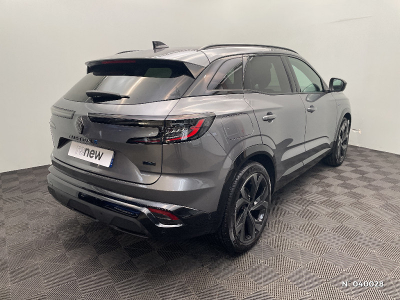 Tableau de bord full numérique 12,3'' / Alerte franchissement de ligne et assistant maintien dans la voie / Jantes alliage 20" Daytona diamantées noir / Pack Design esprit Alpine extérieur / Pack Design esprit Alpine intérieur / Sellerie mixte tissu carbone / alcantara avec surpiqures bleu / Seuil de portes / Volant cuir & Alcantara et surpiqures bleu/blanc/rouge / Pré-équipement alarme / 2 prises USB à l'AV et à l'AR / Navigation Google Maps / Ciel de toit gris anthracite / Clignotants AR dynamiques / Feux AR à LED avec effet 3D / Barres de toit longitudinales / Aide au parking AV/AR et latéral / Commutation automatique des feux de route/croisement / Multi-sense / Carte Renault accès et démarrage mains libres / Airbags latéraux, milieu AV et rideaux / Alerte de distance de sécurité / Freinage actif d'urgence urbain (piéton + cycliste + intersection) / Kit de gonflage / Sièges avec système ISOFIX / Frein de parking électrique avec fonction Auto-Hold / Feux AV full LED Adaptative Vision / Console centrale avec repose main coulissant / Faux plancher de coffre / Miroir de surveillance enfants / Lumière d'ambiance personnalisable / Rétroviseur intérieur électrochrome sans cadre / Système Multimédia openR link 12" : navigation, services Google, audio Arkamys Auditorium