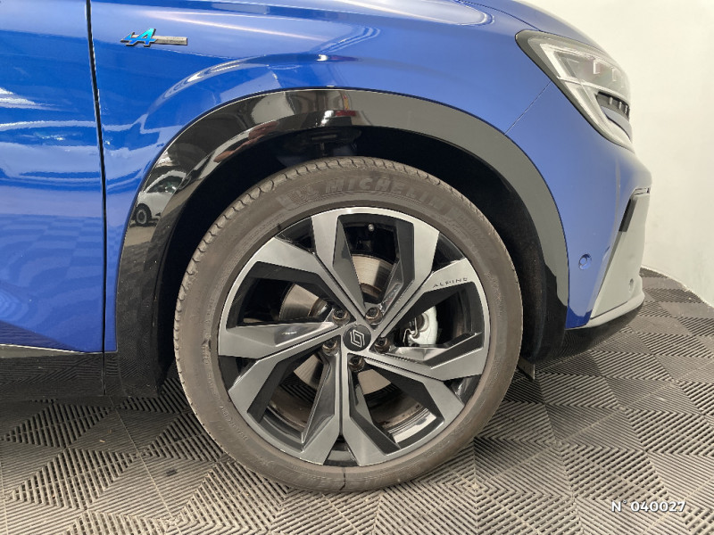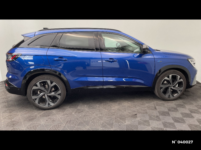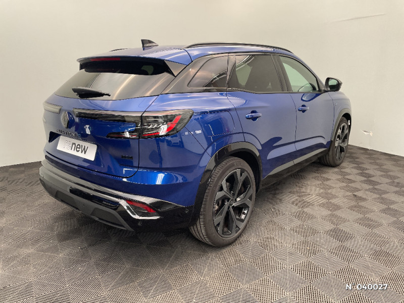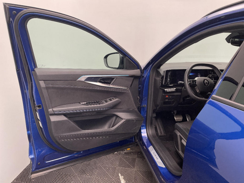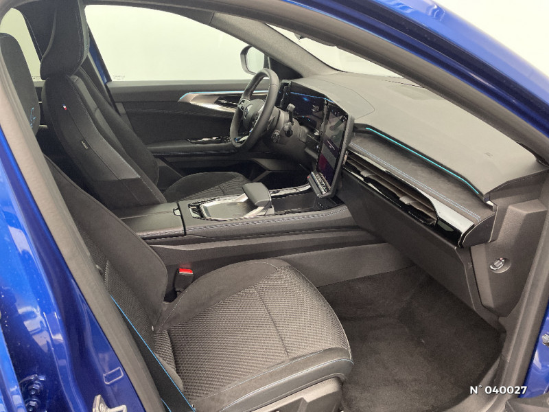 Pré-équipement alarme / Système Multimédia openR link 12" : navigation, services Google, audio Arkamys Auditorium / Airbags latéraux, milieu AV et rideaux / Alerte de distance de sécurité / Freinage actif d'urgence urbain (piéton + cycliste + intersection) / Kit de gonflage / Sièges avec système ISOFIX / Frein de parking électrique avec fonction Auto-Hold / Feux AV full LED Adaptative Vision / Console centrale avec repose main coulissant / Faux plancher de coffre / Miroir de surveillance enfants / Pack Design esprit Alpine intérieur / Sellerie mixte tissu carbone / alcantara avec surpiqures bleu / Seuil de portes / Volant cuir & Alcantara et surpiqures bleu/blanc/rouge / 2 prises USB à l'AV et à l'AR / Navigation Google Maps / Tableau de bord full numérique 12,3'' / Alerte franchissement de ligne et assistant maintien dans la voie / Lumière d'ambiance personnalisable / Rétroviseur intérieur électrochrome sans cadre / Ciel de toit gris anthracite / Clignotants AR dynamiques / Feux AR à LED avec effet 3D / Jantes alliage 20" Daytona diamantées noir / Pack Design esprit Alpine extérieur / Barres de toit longitudinales / Aide au parking AV/AR et latéral / Commutation automatique des feux de route/croisement / Multi-sense / Carte Renault accès et démarrage mains libres