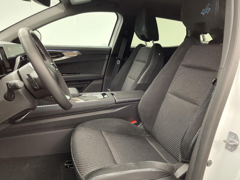 Sièges avec système ISOFIX / Avertisseur d'angle mort et prévention sortie de voie en cas de dépassement / Active driver assist / Classe energetique B / Notice d'utilisation digitale embarqué dans le système multimédia du véhicule / Caméra 3D vision 360° / Easy park assist et aides au parking avant, arrière et latérale / Feux AV full LED Adaptative Vision / Appuie-têtes AV grand confort / Banquette AR coulissante 1/3-2/3 avec accoudoir central / Tableau de bord full numérique 12,3'' / Alerte franchissement de ligne et assistant maintien dans la voie / Avertisseur de sortie de stationnement en marche AR avec freinage d'urgence automatique / Pré-équipement alarme / Sortie sécurisée des occupants / Siège conducteur électrique avec réglage lombaire et fonction massage, siège passager électrique / Ciel de toit gris anthracite / Clignotants AR dynamiques / Feux AR à LED avec effet 3D / Jantes alliage 20" Daytona diamantées noir / Pack Design esprit Alpine extérieur / Pack Design esprit Alpine intérieur / Sellerie mixte tissu carbone / alcantara avec surpiqures bleu / Seuil de portes / Volant cuir & Alcantara et surpiqures bleu/blanc/rouge / 2 prises USB à l'AV et à l'AR / Navigation Google Maps / Système multimédia OpenR Link avec écran tactile 12" et services Google / Console centrale avec repose main coulissant / Faux plancher de coffre / Hayon motorisé main libre / Miroir de surveillance enfants / Lumière d'ambiance personnalisable / Rétroviseur intérieur électrochrome sans cadre / Rétroviseurs extérieurs électriques à mémoire, dégivrants, rabattables automatiquement / Classe energetique 1 / Active driver assist régulateur de vitesse adaptatif intelligent + centrage dans la voie / Conduite hybride prédictive / Eclairage d'accompagnement au sol avec projection logo / Système Multimédia openR link 12" : navigation, services Google, audio Arkamys Auditorium / Barres de toit longitudinales / Peinture opaque / Aide au parking AV/AR et latéral / Commutation automatique des feux de route/croisement / Multi-sense / Carte Renault accès et démarrage mains libres / Volant chauffant / Airbags latéraux, milieu AV et rideaux / Alerte de distance de sécurité / Freinage actif d'urgence urbain (piéton + cycliste + intersection) / Kit de gonflage