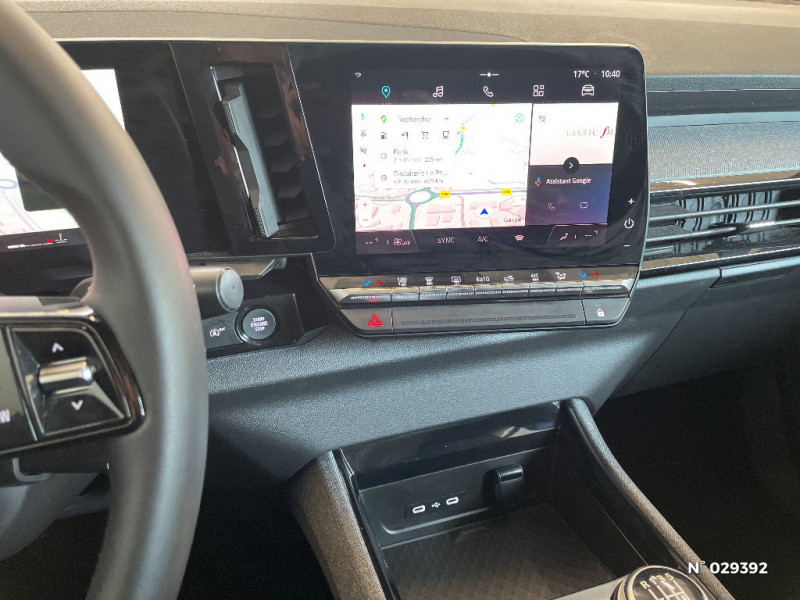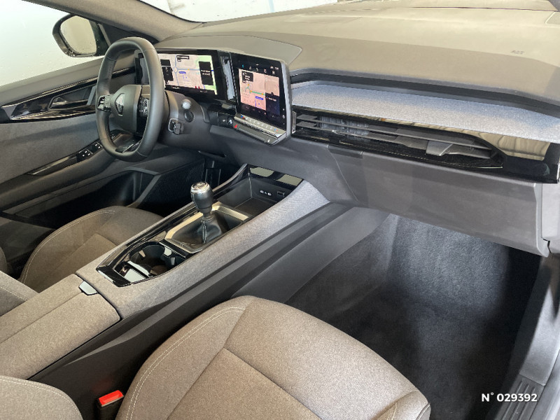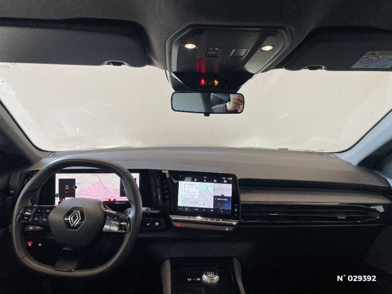 Kit de gonflage / Sièges avec système ISOFIX / Frein de parking électrique avec fonction Auto-Hold / Feux AV full LED Pure Vision / Pare-brise chauffant / Ciel de toit gris anthracite / Sellerie tissu recyclé gris / Volant soft touch / 2 prises USB à l'AV et à l'AR / Navigation Google Maps / Tableau de bord full numérique 12,3'' / Alerte franchissement de ligne et assistant maintien dans la voie / Pré-équipement alarme / Système multimédia connecté OpenR Link avec écran tactile 9" et services Google / Aide au parking AV/AR et latéral / Carte Renault accès et démarrage mains libres / Airbags latéraux, milieu AV et rideaux / Alerte de distance de sécurité / Freinage actif d'urgence urbain (piéton + cycliste + intersection)