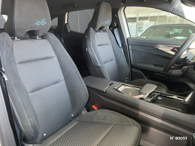 Ciel de toit gris anthracite / Clignotants AR dynamiques / Commutation automatique des feux de route/croisement / Console centrale avec repose main coulissant / Détection intelligente des limitations de vitesse et prévention survitesse / Easy park assist et aides au parking AV, AR et latérale / Eclairage d'accompagnement au sol avec projection logo / Faux plancher de coffre / Feux AR à LED avec effet 3D / Feux AV full LED Adaptative Vision / Frein de parking électrique avec fonction Auto-Hold / Hayon motorisé main libre / Jantes alliage 20" Daytona diamantées noir / Kit de gonflage / Lumière d'ambiance personnalisable / Miroir de surveillance enfants / Multi-sense / My Safety switch (raccourci vers configuration personnalisée des aides à la conduite) / Navigation Google Maps / Pack Design esprit Alpine extérieur / Pack Design esprit Alpine intérieur / Pare-brise chauffant / Prédisposition éthylotest / Pré-équipement alarme / Rétroviseur intérieur électrochrome sans cadre / Rétroviseurs extérieurs électriques à mémoire, dégivrants, rabattables automatiquement / Sellerie mixte tissu carbone / alcantara avec surpiqûres bleues / Seuil de portes / Siège conducteur électrique avec réglage lombaire et fonction massage, siège passager électrique / Sièges avec système ISOFIX / Sortie sécurisée des occupants / Système Multimédia openR link 12" : navigation, services Google, audio Arkamys Auditorium / Tableau de bord full numérique 12,3'' / Volant chauffant / 2 prises USB à l'AV et à l'AR / Active driver assist régulateur de vitesse adaptatif intelligent + centrage dans la voie / Airbags latéraux, milieu AV et rideaux / Alerte de distance de sécurité / Alerte détection de fatigue / Alerte franchissement de ligne et assistant maintien dans la voie / Appuie-têtes AV grand confort / Avertisseur d'angle mort et prévention sortie de voie en cas de dépassement / Avertisseur de sortie de stationnement en marche AR avec freinage d'urgence automatique / Banquette AR coulissante 1/3-2/3 avec accoudoir central / Barres de toit longitudinales / Boîte de vitesse automatique 4 rapports / Caméra 3D vision 360° / Carte Renault accès et démarrage mains libres
