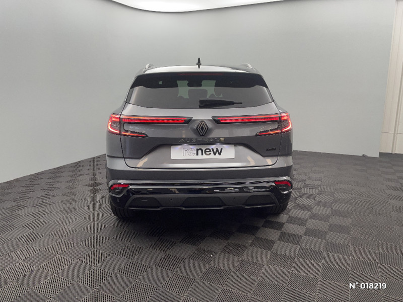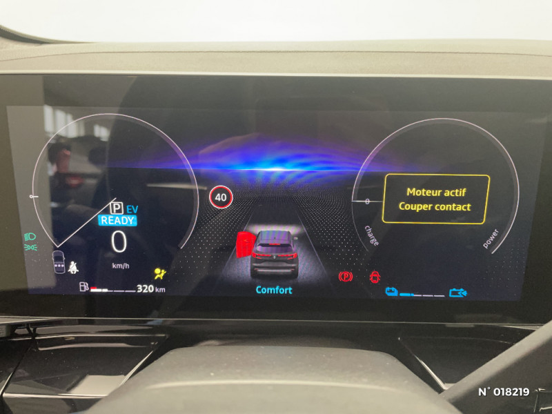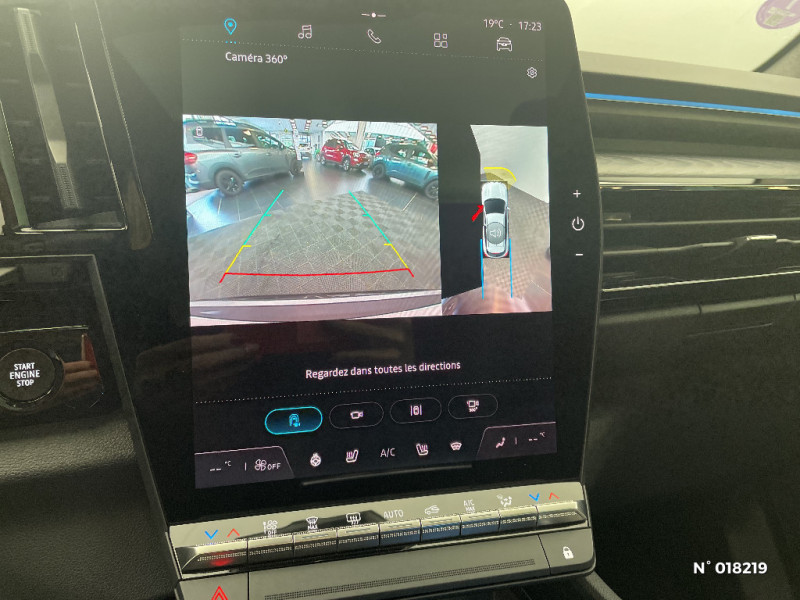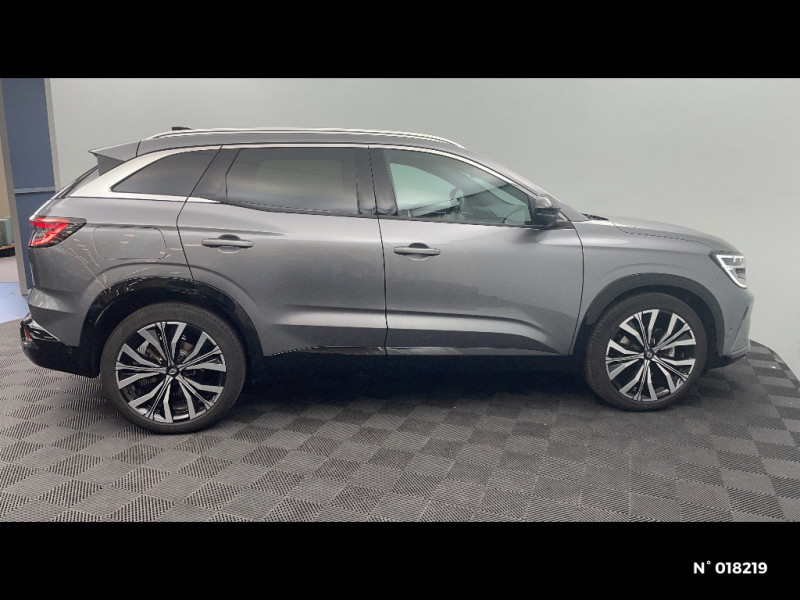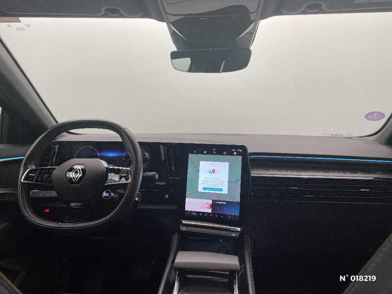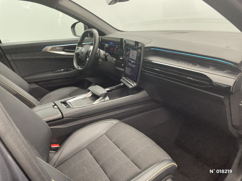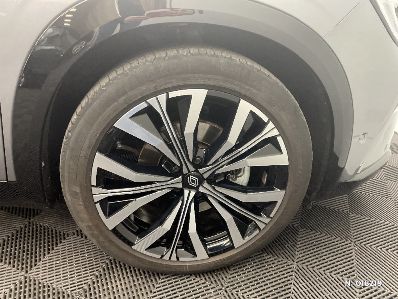 Hayon motorisé main libre / Miroir de surveillance enfants / Lumière d'ambiance personnalisable / Système Multimédia openR link 12" : navigation, services Google, audio Arkamys Auditorium / Classe energetique 1 / Eclairage d'accompagnement au sol avec projection logo / Rétroviseur intérieur électrochrome sans cadre / Rétroviseurs extérieurs électriques à mémoire, dégivrants, rabattables automatiquement / Siège conducteur électrique avec réglage lombaire et fonction massage / Ciel de toit gris anthracite / Clignotants AR dynamiques / Feux AR à LED avec effet 3D / Insert de tableau de bord en bois véritable / Jantes alliage 20" Effie diamantées noir / Sellerie mixte similicuir / tissu carbone foncé avec surpiqures or / Seuil de portes / 2 prises USB à l'AV et à l'AR / Navigation Google Maps / Système multimédia OpenR Link avec écran tactile 12" et services Google / Tableau de bord full numérique 12,3'' / Alerte franchissement de ligne et assistant maintien dans la voie / Avertisseur de sortie de stationnement en marche AR avec freinage d'urgence automatique / Pré-équipement alarme / Sortie sécurisée des occupants / Barres de toit longitudinales / Peinture opaque / Aide au parking AV/AR et latéral / Commutation automatique des feux de route/croisement / Multi-sense / Carte Renault accès et démarrage mains libres / Volant chauffant / Airbags latéraux, milieu AV et rideaux / Alerte de distance de sécurité / Freinage actif d'urgence urbain (piéton + cycliste + intersection) / Kit de gonflage / Sièges avec système ISOFIX / Avertisseur d'angle mort et prévention sortie de voie en cas de dépassement / Notice d'utilisation digitale embarqué dans le système multimédia du véhicule / Caméra 3D vision 360° / Easy park assist et aides au parking avant, arrière et latérale / Feux AV full LED Adaptative Vision / Banquette AR coulissante 1/3-2/3 avec accoudoir central / Console centrale avec repose main coulissant / Faux plancher de coffre