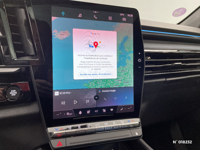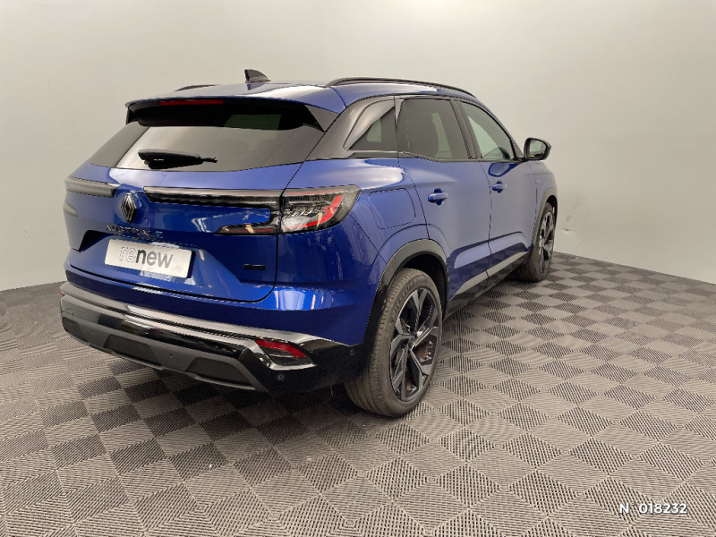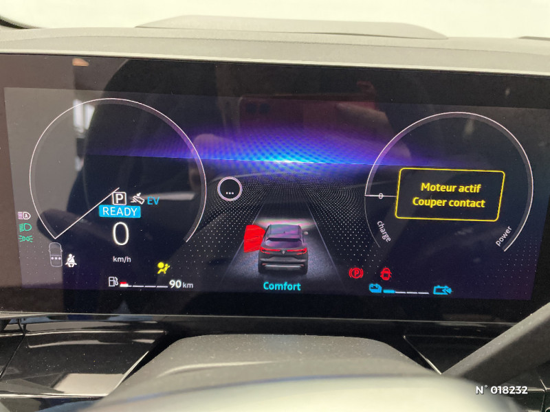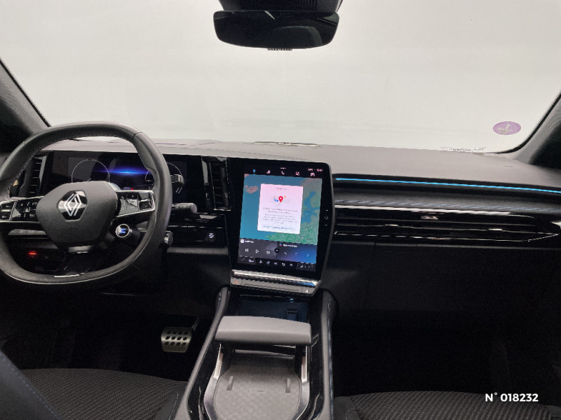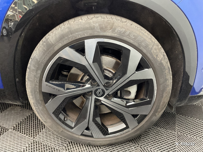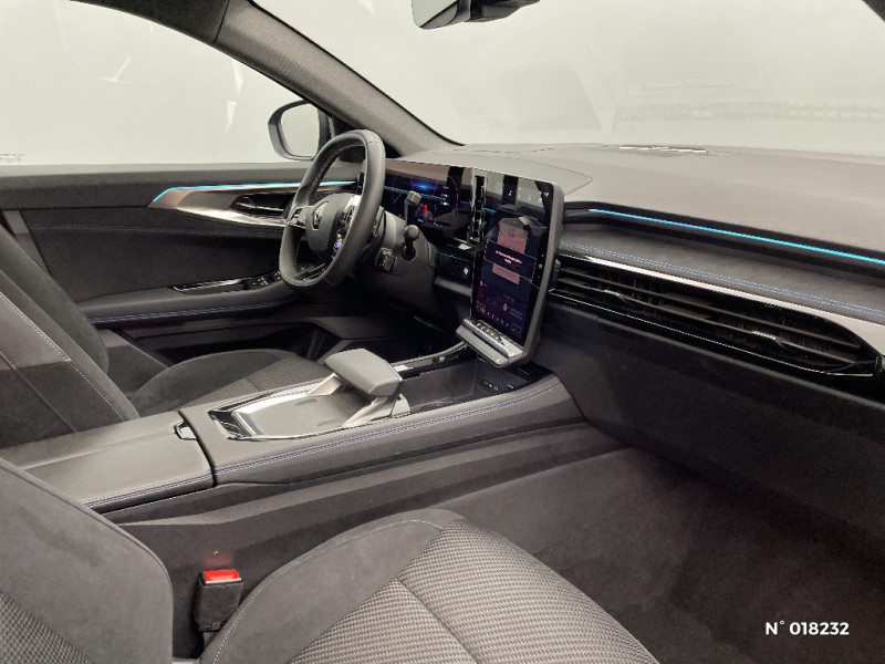 Airbags latéraux, milieu AV et rideaux / Alerte de distance de sécurité / Freinage actif d'urgence urbain (piéton + cycliste + intersection) / Kit de gonflage / Sièges avec système ISOFIX / Avertisseur d'angle mort et prévention sortie de voie en cas de dépassement / Frein de parking électrique avec fonction Auto-Hold / Caméra 3D vision 360° / Easy park assist et aides au parking avant, arrière et latérale / Feux AV full LED Adaptative Vision / Barres de toit longitudinales / Alerte franchissement de ligne et assistant maintien dans la voie / Avertisseur de sortie de stationnement en marche AR avec freinage d'urgence automatique / Pré-équipement alarme / Sortie sécurisée des occupants / Active driver assist régulateur de vitesse adaptatif intelligent + centrage dans la voie / Conduite hybride prédictive / Eclairage d'accompagnement au sol avec projection logo / Système Multimédia openR link 12" : navigation, services Google, audio Arkamys Auditorium / Appuie-têtes AV grand confort / Banquette AR coulissante 1/3-2/3 avec accoudoir central / Console centrale avec repose main coulissant / Faux plancher de coffre / Hayon motorisé main libre / Miroir de surveillance enfants / Lumière d'ambiance personnalisable / Pare-brise chauffant / Rétroviseur intérieur électrochrome sans cadre / Rétroviseurs extérieurs électriques à mémoire, dégivrants, rabattables automatiquement / Siège conducteur électrique avec réglage lombaire et fonction massage, siège passager électrique / Ciel de toit gris anthracite / Clignotants AR dynamiques / Feux AR à LED avec effet 3D / Jantes alliage 20" Daytona diamantées noir / Pack Design esprit Alpine extérieur / Pack Design esprit Alpine intérieur / Sellerie mixte tissu carbone / alcantara avec surpiqures bleu / Seuil de portes / Volant cuir & Alcantara et surpiqures bleu/blanc/rouge / 2 prises USB à l'AV et à l'AR / Navigation Google Maps / Tableau de bord full numérique 12,3'' / Commutation automatique des feux de route/croisement / Multi-sense / Carte Renault accès et démarrage mains libres / Volant chauffant