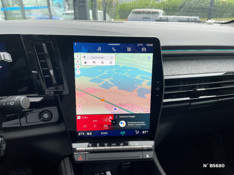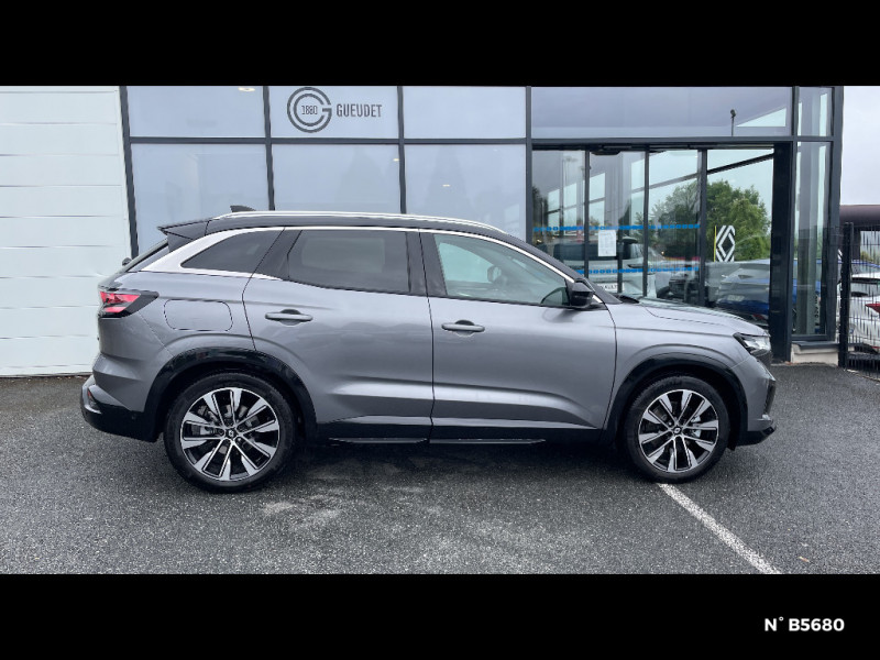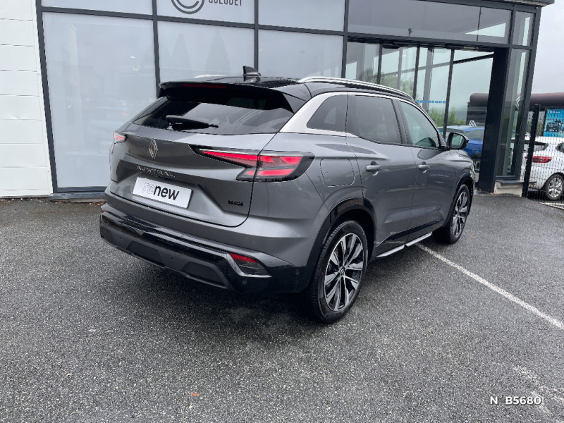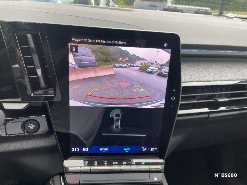 Sortie sécurisée des occupants / Système Multimédia openR link 12" : navigation, services Google, audio Arkamys Auditorium / Tableau de bord full numérique 12,3'' / 2 prises USB à l'AV et à l'AR / Aide au parking AV/AR et latéral / Airbags latéraux, milieu AV et rideaux / Alerte de distance de sécurité / Alerte détection de fatigue / Alerte franchissement de ligne et assistant maintien dans la voie / Avertisseur d'angle mort et prévention sortie de voie en cas de dépassement / Avertisseur de sortie de stationnement en marche AR avec freinage d'urgence automatique / Barres de toit longitudinales / Boîte de vitesse hybride multimode 6 rapports / Carte Renault accès et démarrage mains libres / Ciel de toit gris anthracite / Clignotants AR dynamiques / Console centrale avec repose main coulissant / Détection intelligente des limitations de vitesse et prévention survitesse / Faux plancher de coffre / Feux AR à LED avec effet 3D / Feux LED adaptive vision (avec fonction antibrouillard intégrée) / Frein de parking électrique avec fonction Auto-Hold / Jantes alliage 19" Komah diamantées noir brillant / Kit de gonflage / Lumière d'ambiance personnalisable / Maintenance connectée, incluse pendant 8 ans / Mise à jour système (via firmware over the air FOTA), inclus pendant 5 ans / Multi-sense / My Safety switch (raccourci vers configuration personnalisée des aides à la conduite) / Navigation Google Maps / Notice d'utilisation digitale embarqué dans le système multimédia du véhicule / Pack connected driving, inclus pendant 5 ans / Pack contrôle à distance (via l'application My Renault), inclus pendant 5 ans / Prédisposition éthylotest / Pré-équipement alarme / Rétroviseur intérieur électrochrome sans cadre / Sellerie mixte textile refined/tissu gris clair avec motif embossé / Sièges avec système ISOFIX