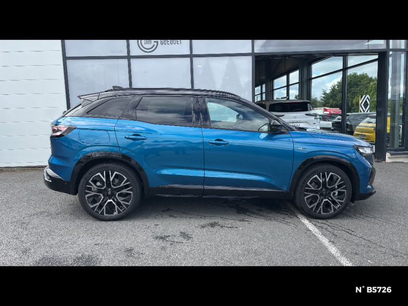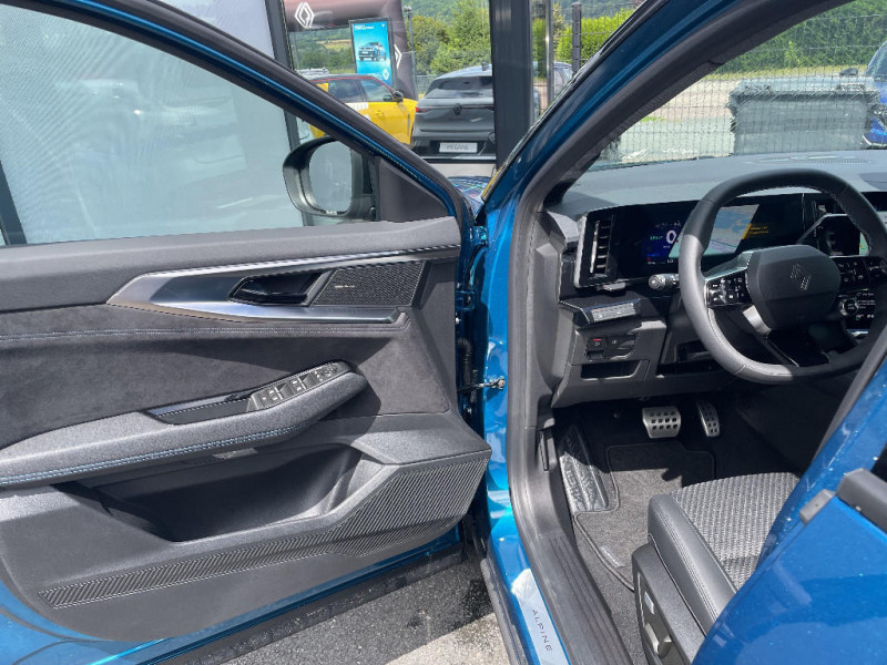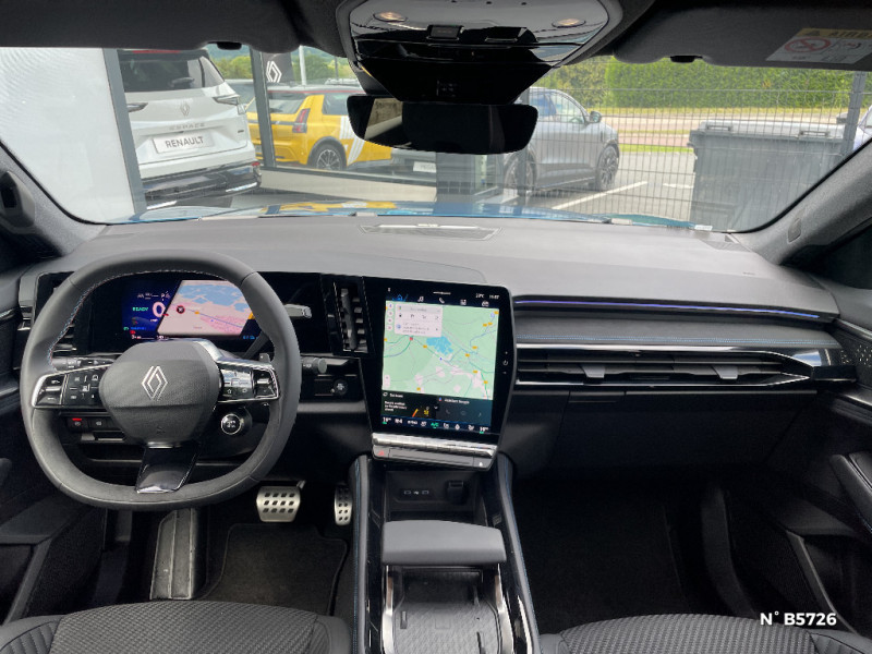 Alerte de distance de sécurité / Alerte détection de fatigue / Alerte franchissement de ligne et assistant maintien dans la voie / Avertisseur d'angle mort et prévention sortie de voie en cas de dépassement / Avertisseur de sortie de stationnement en marche AR avec freinage d'urgence automatique / Banquette AR coulissante 1/3-2/3 avec accoudoir central / Barres de toit longitudinales / Boîte de vitesse hybride multimode 6 rapports / Carte Renault accès et démarrage mains libres / Ciel de toit gris anthracite / Clignotants AR dynamiques / Console centrale avec repose main coulissant / Détection intelligente des limitations de vitesse et prévention survitesse / Faux plancher de coffre / Feux AR à LED avec effet 3D / Feux LED adaptive vision (avec fonction antibrouillard intégrée) / Frein de parking électrique avec fonction Auto-Hold / Hayon motorisé main libre / Jantes alliage 20" Altitude diamanté noir avec vernis fumé gris / Kit de gonflage / Lumière d'ambiance personnalisable / Maintenance connectée, incluse pendant 8 ans / Mise à jour système (via firmware over the air FOTA), inclus pendant 5 ans / Multi-sense / My Safety switch (raccourci vers configuration personnalisée des aides à la conduite) / Navigation Google Maps / Notice d'utilisation digitale embarqué dans le système multimédia du véhicule / Pack connected driving, inclus pendant 5 ans / Pack contrôle à distance (via l'application My Renault), inclus pendant 5 ans / Pack Design esprit Alpine extérieur / Pack Design esprit Alpine intérieur / Prédisposition éthylotest / Pré-équipement alarme / Active driver assist régulateur de vitesse adaptatif intelligent + centrage dans la voie / Aide au parking AV/AR et latéral / Sellerie mixte tissu carbone Alcantara® avec surpiqûres bleu, blanc, rouge / Rétroviseur intérieur électrochrome sans cadre / Seuil de portes / Siège conducteur électrique avec réglage lombaire et fonction massage, siège passager électrique / Sièges avec système ISOFIX / Sortie sécurisée des occupants / Système de reconnaissance du conducteur / Airbags latéraux, milieu AV et rideaux / Système Multimédia openR link 12" : navigation, services Google, audio Arkamys Auditorium / Tableau de bord full numérique 12,3'' / Volant chauffant / 2 prises USB à l'AV et à l'AR