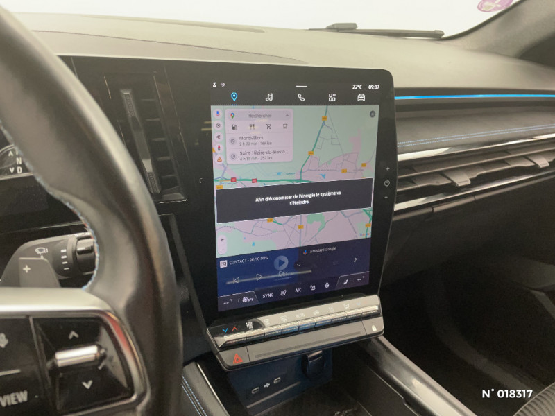 Ciel de toit gris anthracite / Clignotants AR dynamiques / Freinage actif d'urgence urbain (piéton + cycliste + intersection) / Kit de gonflage / Sièges avec système ISOFIX / Avertisseur d'angle mort et prévention sortie de voie en cas de dépassement / Active driver assist / Classe energetique B / Notice d'utilisation digitale embarqué dans le système multimédia du véhicule / Caméra 3D vision 360° / Feux AV full LED Adaptative Vision / Commutation automatique des feux de route/croisement / Multi-sense / Carte Renault accès et démarrage mains libres / Volant chauffant / Classe energetique 1 / Active driver assist régulateur de vitesse adaptatif intelligent + centrage dans la voie / Airbags latéraux, milieu AV et rideaux / Alerte de distance de sécurité / Barres de toit longitudinales / Peinture opaque / Aide au parking AV/AR et latéral / Appuie-têtes AV grand confort / Banquette AR coulissante 1/3-2/3 avec accoudoir central / Console centrale avec repose main coulissant / Faux plancher de coffre / Hayon motorisé main libre / Miroir de surveillance enfants / Lumière d'ambiance personnalisable / Rétroviseur intérieur électrochrome sans cadre / Rétroviseurs extérieurs électriques à mémoire, dégivrants, rabattables automatiquement / Siège conducteur électrique avec réglage lombaire et fonction massage, siège passager électrique / Système multimédia OpenR Link avec écran tactile 12" et services Google / Tableau de bord full numérique 12,3'' / Alerte franchissement de ligne et assistant maintien dans la voie / Avertisseur de sortie de stationnement en marche AR avec freinage d'urgence automatique / Pré-équipement alarme / Sortie sécurisée des occupants / Feux AR à LED avec effet 3D / Jantes alliage 20" Daytona diamantées noir / Pack Design esprit Alpine extérieur / Pack Design esprit Alpine intérieur / Sellerie mixte tissu carbone / alcantara avec surpiqures bleu / Seuil de portes / Volant cuir & Alcantara et surpiqures bleu/blanc/rouge / 2 prises USB à l'AV et à l'AR / Navigation Google Maps