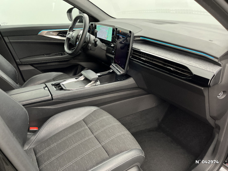 Multi-sense / Carte Renault accès et démarrage mains libres / Airbags latéraux, milieu AV et rideaux / Alerte de distance de sécurité / Peinture opaque / Aide au parking AV/AR et latéral / Commutation automatique des feux de route/croisement / Freinage actif d'urgence urbain (piéton + cycliste + intersection) / Kit de gonflage / Sièges avec système ISOFIX / Notice d'utilisation digitale embarqué dans le système multimédia du véhicule / Feux AV full LED Adaptative Vision / Banquette AR coulissante 1/3-2/3 avec accoudoir central / Console centrale avec repose main coulissant / Faux plancher de coffre / Miroir de surveillance enfants / Lumière d'ambiance personnalisable / Rétroviseur intérieur électrochrome sans cadre / Ciel de toit gris anthracite / Jantes alliage 19" Komah diamantées noir / Sellerie mixte similicuir / tissu dégradé de gris / 2 prises USB à l'AV et à l'AR / Navigation Google Maps / Système multimédia OpenR Link avec écran tactile 12" et services Google / Tableau de bord full numérique 12,3'' / Alerte franchissement de ligne et assistant maintien dans la voie / Pré-équipement alarme / Evolution multimedia 1 / Classe energetique 1 / Système Multimédia openR link 12" : navigation, services Google, audio Arkamys Auditorium
