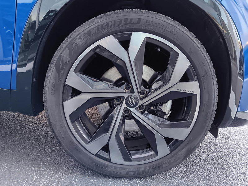Aide au parking AV/AR et latéral / Commutation automatique des feux de route/croisement / Feux AR à LED avec effet 3D / Feux AV full LED Adaptative Vision / Jantes alliage 20" Daytona diamantées noir / Navigation Google Maps / Pack Design esprit Alpine extérieur / Pack Design esprit Alpine intérieur / Système Multimédia openR link 12" : navigation, services Google, audio Arkamys Auditorium / Volant cuir & Alcantara et surpiqûres bleu/blanc/rouge / 2 prises USB à l'AV et à l'AR / Airbags latéraux, milieu AV et rideaux / Alerte de distance de sécurité / Alerte franchissement de ligne et assistant maintien dans la voie / Barres de toit longitudinales / Carte Renault accès et démarrage mains libres / Ciel de toit gris anthracite / Clignotants AR dynamiques / Console centrale avec repose main coulissant / Faux plancher de coffre / Frein de parking électrique avec fonction Auto-Hold / Freinage actif d'urgence urbain (piéton + cycliste + intersection) / Kit de gonflage / Lumière d'ambiance personnalisable / Miroir de surveillance enfants / Multi-sense / Pré-équipement alarme / Rétroviseur intérieur électrochrome sans cadre / Seuil de portes / Sièges avec système ISOFIX / Tableau de bord full numérique 12,3''